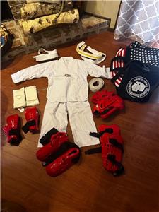 Martial Arts Sparring Gear Youth Size 00 Uniform, Belts, Pads, Gear, Bag Taekwondo
