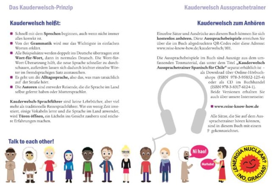 Dieser handliche Sprachführer wendet sich sowohl an Anfänger als auch an Reisende mit Spanischkenntnissen, die mehr über die Besonderheiten des chilenischen Spanisch erfahren möchten. Denn auch wenn junge Chilenen heute Englisch lernen und man in Teilen von Chile sogar mit Deutsch weiterkommt: Mit Spanischkenntnissen signalisiert man, dass man sich für die Menschen interessiert und nicht nur zu konsumieren gedenkt.+++ Kauderwelsch Sprachführer bieten einen schnellen Einstieg in fremde Sprachen und vermitteln Wissenswertes über Land und Leute. Alle fremdsprachigen Sätze im Buch werden zusätzlich zur sinngemäßen Übersetzung ins Deutsche auch einmal Wort für Wort übersetzt. Dadurch wird das Verständnis für die fremde Sprache erleichtert, und einzelne Wörter lassen sich schnell austauschen. Die Grammatik wird kurz und verständlich erklärt, soweit es für einen einfachen Sprachgebrauch nötig ist. Das Wörterbuch am Ende hält einen Grundwortschatz und wichtige Begriffe für Reisende bereit. +++ Mit Aussprachebeispielen: Ausgewählte Wörter, Sätze und Redewendungen aus dem Buch kostenlos anhören, über QR-Codes oder den Link auf der Buchrückseite. Kauderwelsch-Bücher sind viel mehr als übliche Reisesprachführer. Ziel ist es, schon nach kurzer Zeit tatsächlich sprechen zu können, wenn auch nicht immer druckreif. +++ Kauderwelsch Sprachführer von Reise Know-How: handlich, alltagstauglich, für über 150 Sprachen.