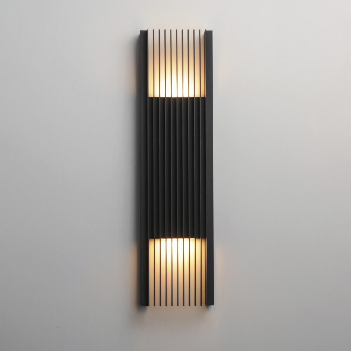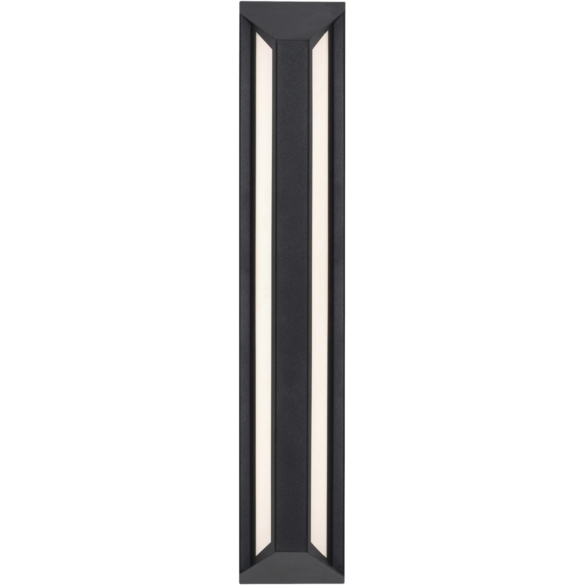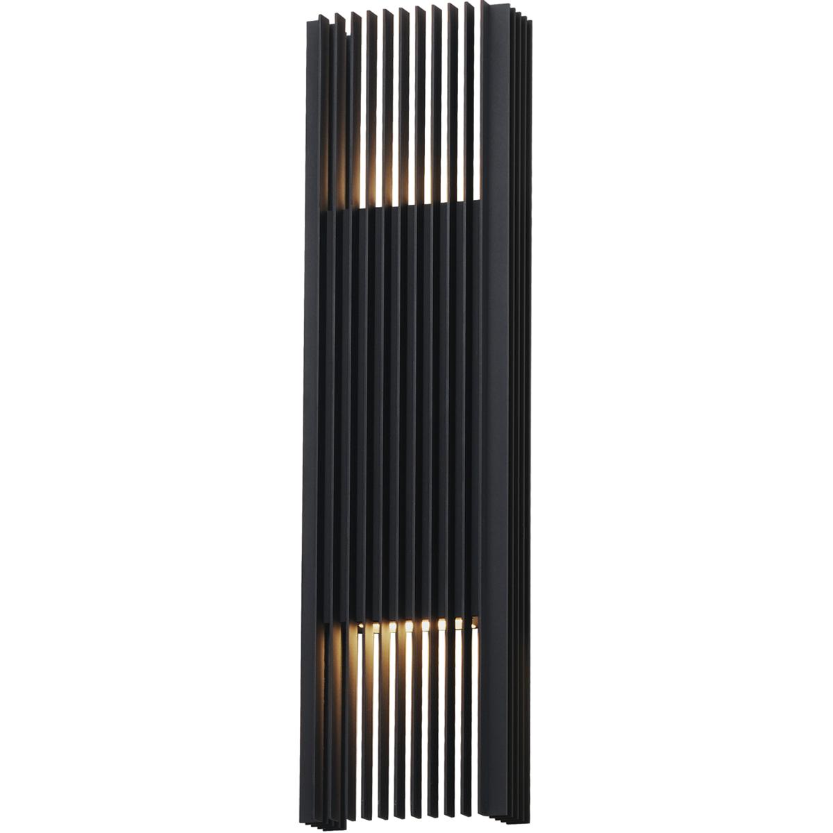 Sharp rectilinear metal lines surround a squared LED housing that shines both upwards and downwards, creating an intriguing pattern of light. This collection offers a full range of products that suits exterior and interiors without bounds. Available in a variety of sconce sizes, as well as an additional pendant and post mount option, the design is completed in a matte Black finish that complements most settings.
