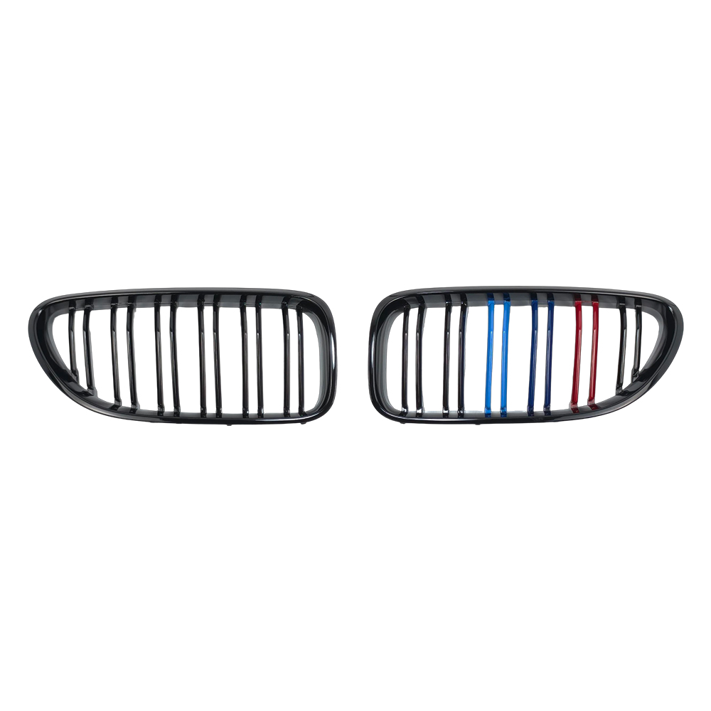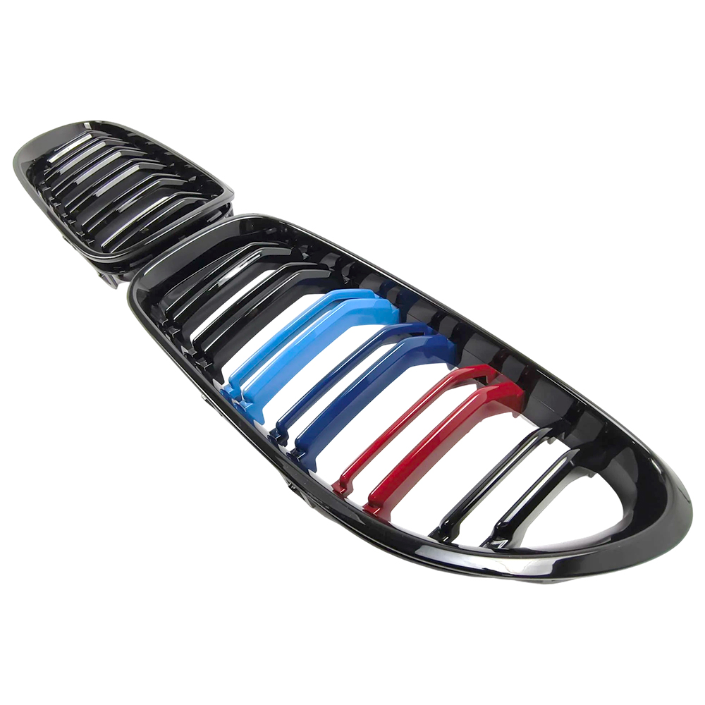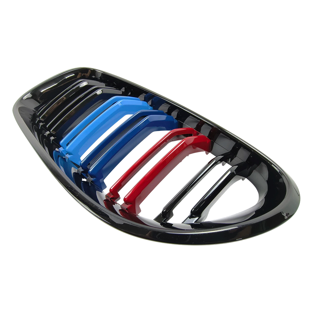 Kühlergrill in Hochglanzschwarz mit M-Farben, oben, mittig, als Ersatz für BMW 6er F12 F13 F06 2011–2016