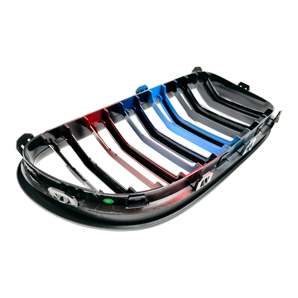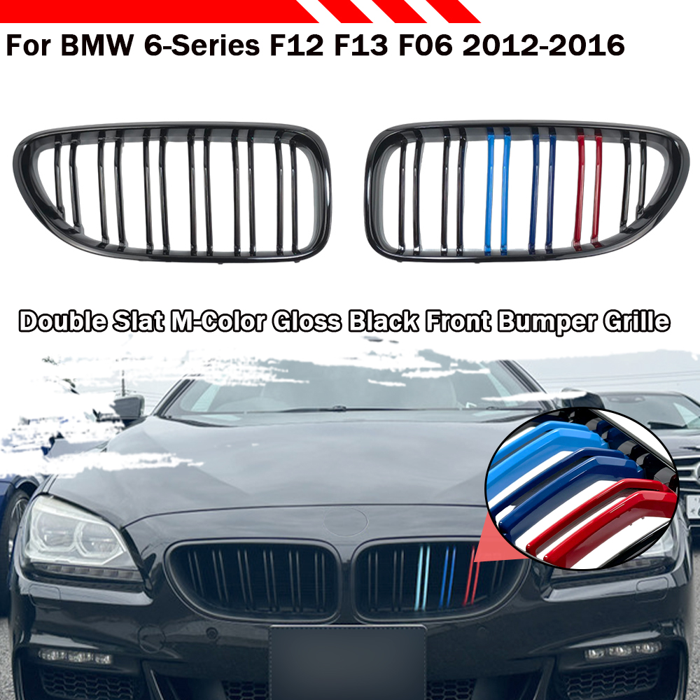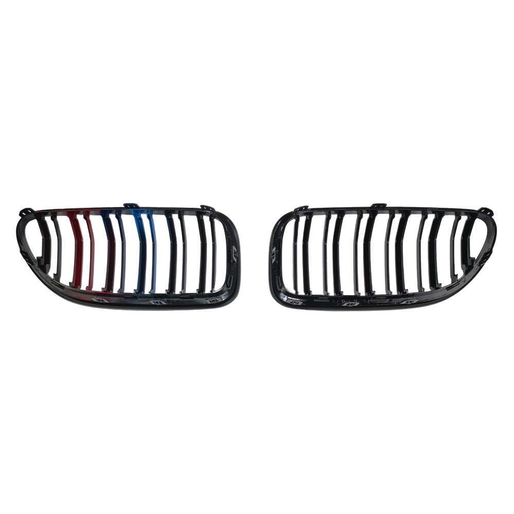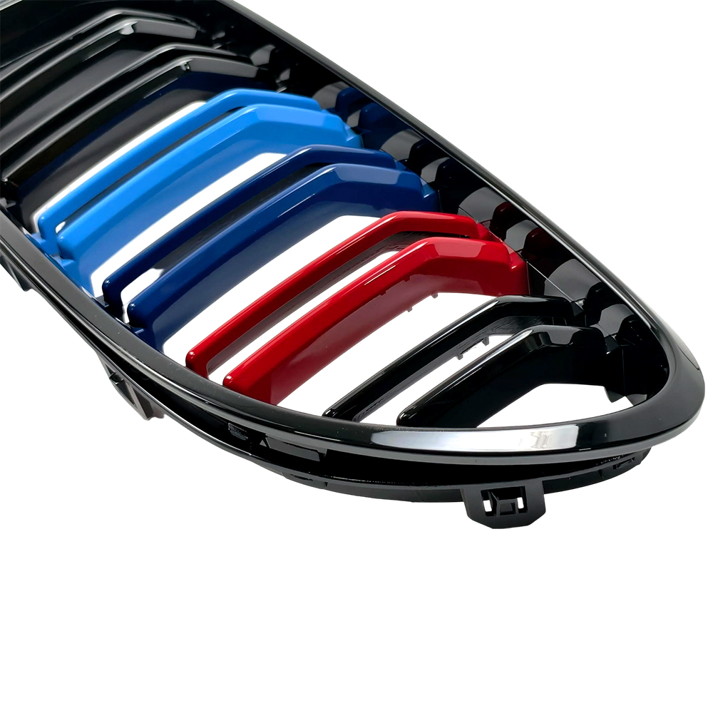 Kühlergrill in Hochglanzschwarz mit M-Farben, oben, mittig, als Ersatz für BMW 6er F12 F13 F06 2011–2016