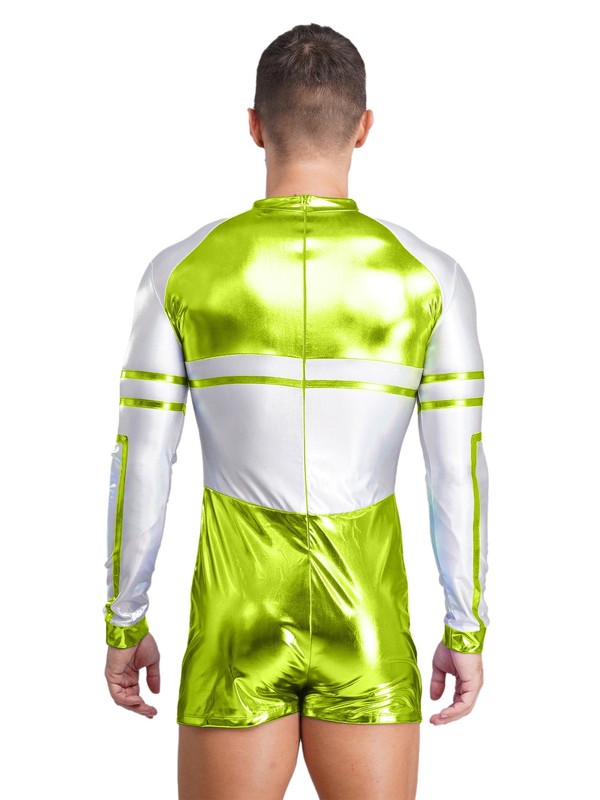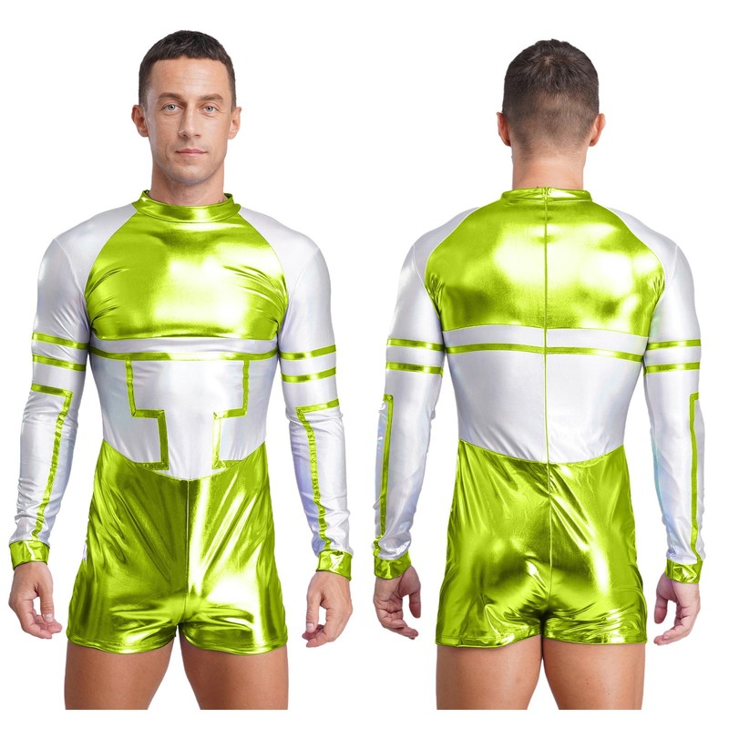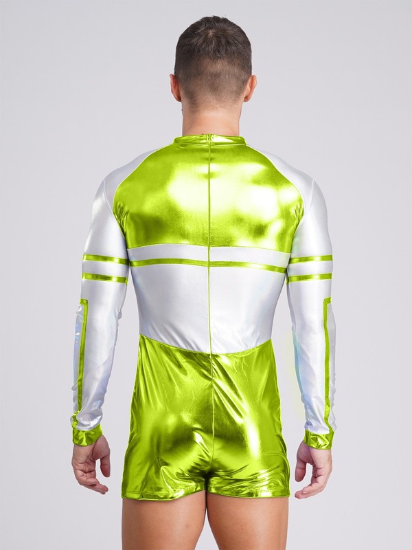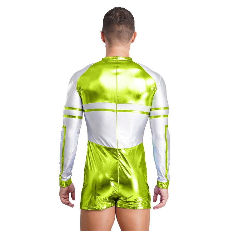 Mens Bodysuit One-Piece Cospaly Back Zip Outerspace Party Astronaut Metallic