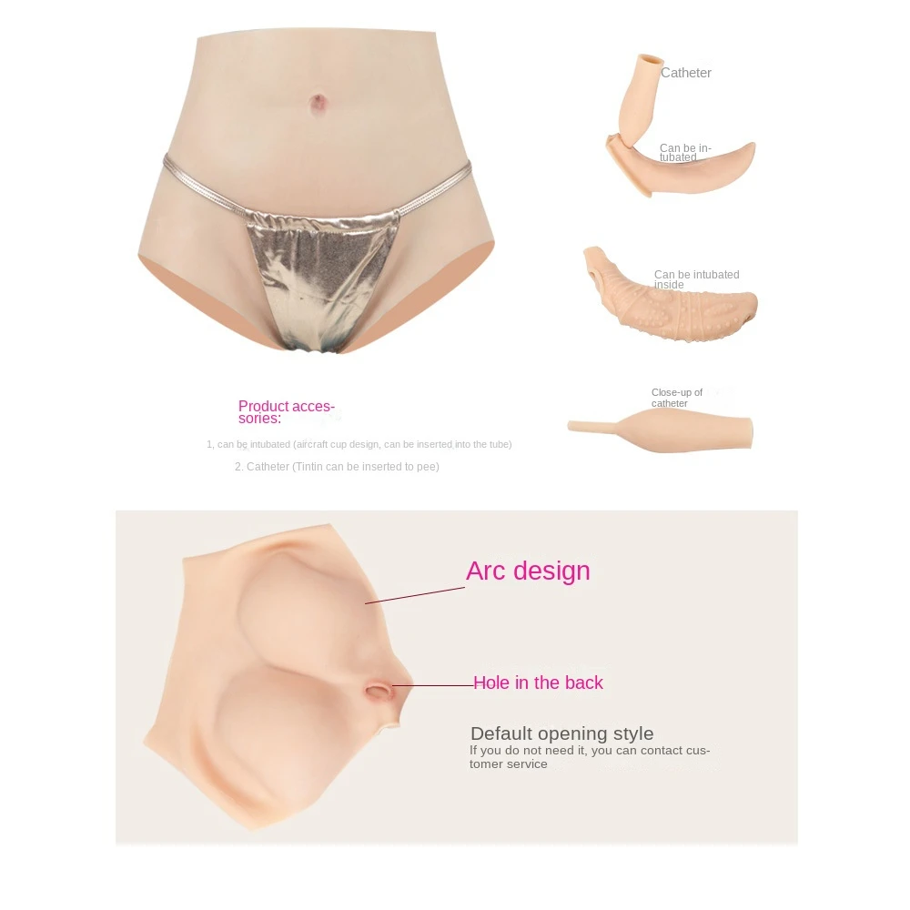 This fake vagina pants, designed for high-waist briefs, high-waist belly retraction, more free movement, built-in organ channels, there are inserting options, stretch up to 2 times, the material is edible silicone (the same material as the baby pacifier) the touch can be comparable to the real, suitable for all types of people.