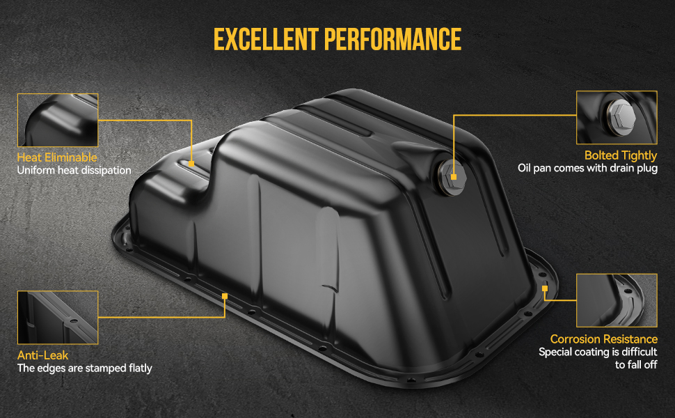 - Precision-engineered oil pan helps maintain engine performance by providing reliable oil storage and circulation.