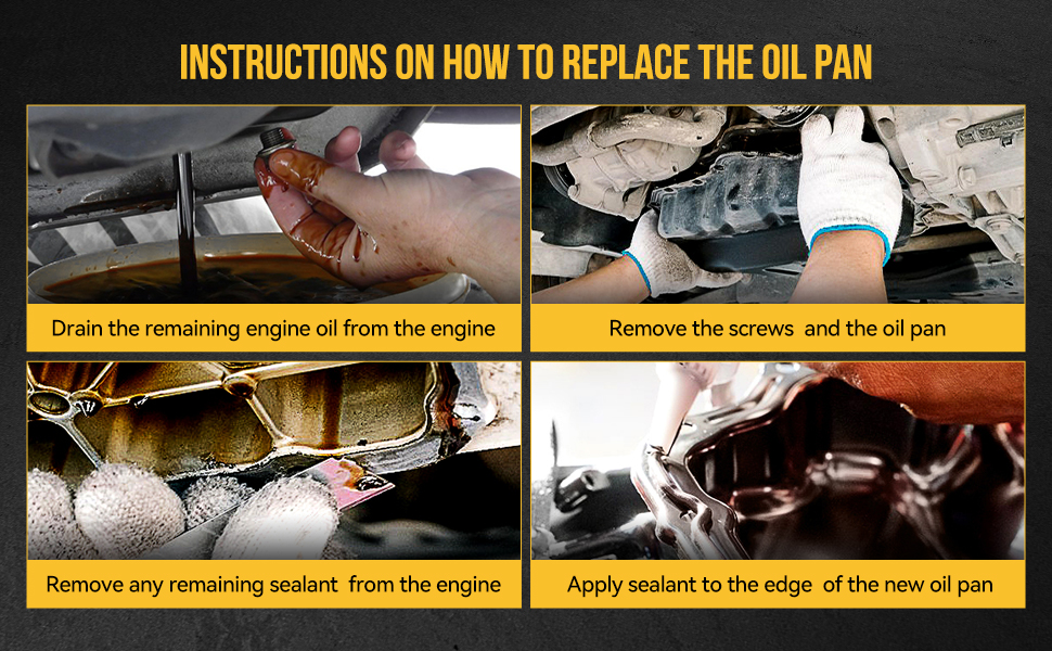 - Position the new oil pan in place, ensuring the alignment with bolt holes.