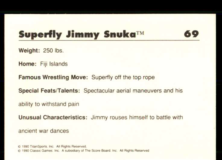 | 1990 Classic WWF Superfly Jimmy Snuka #69 |