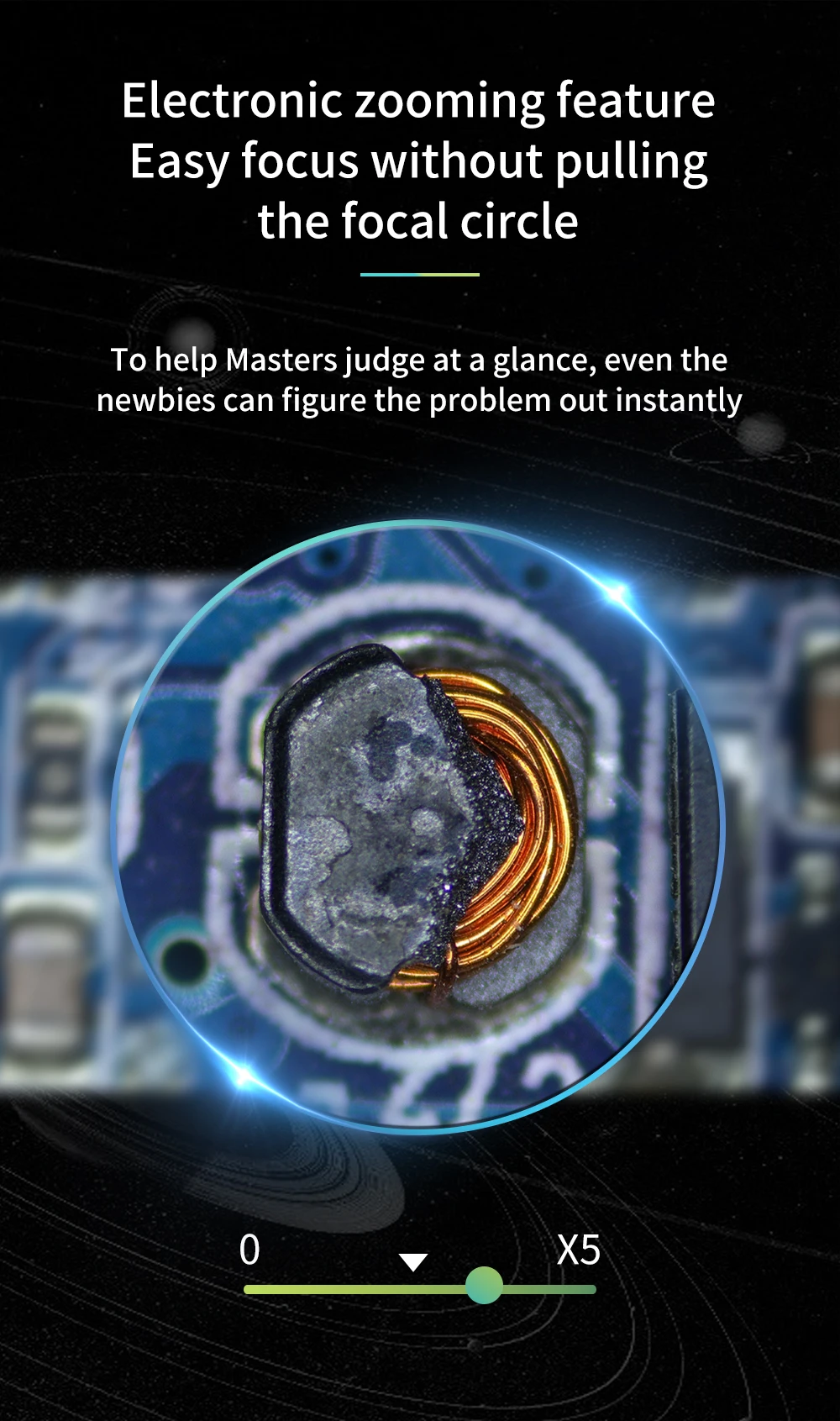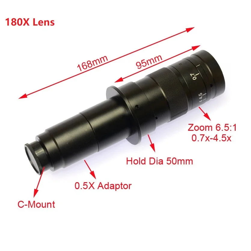 Objective Magnification Power by 0.7 - 4.5X(about 10 - 180X on the display)