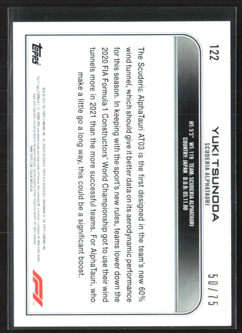 | Yuki Tsunoda 2022 Topps Formula 1 F1 Green /75 #122 Scuderia AlphaTauri |