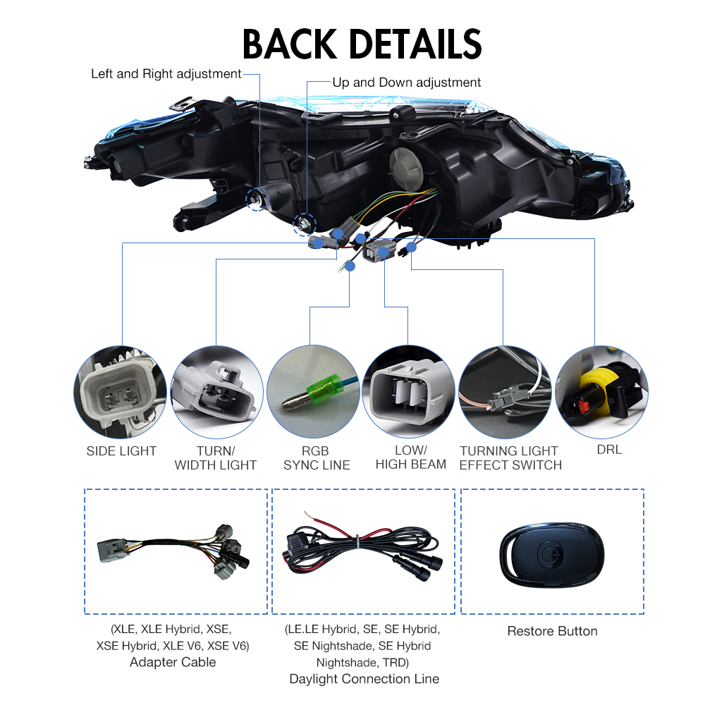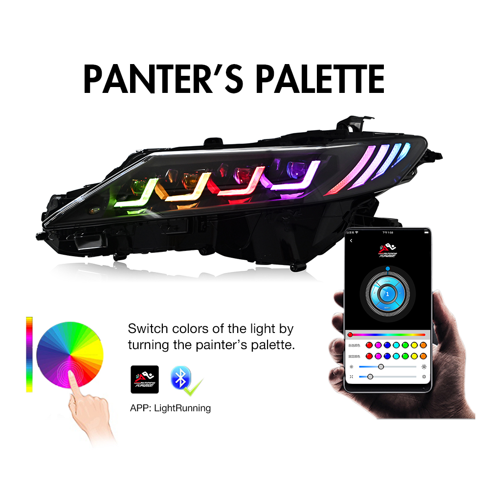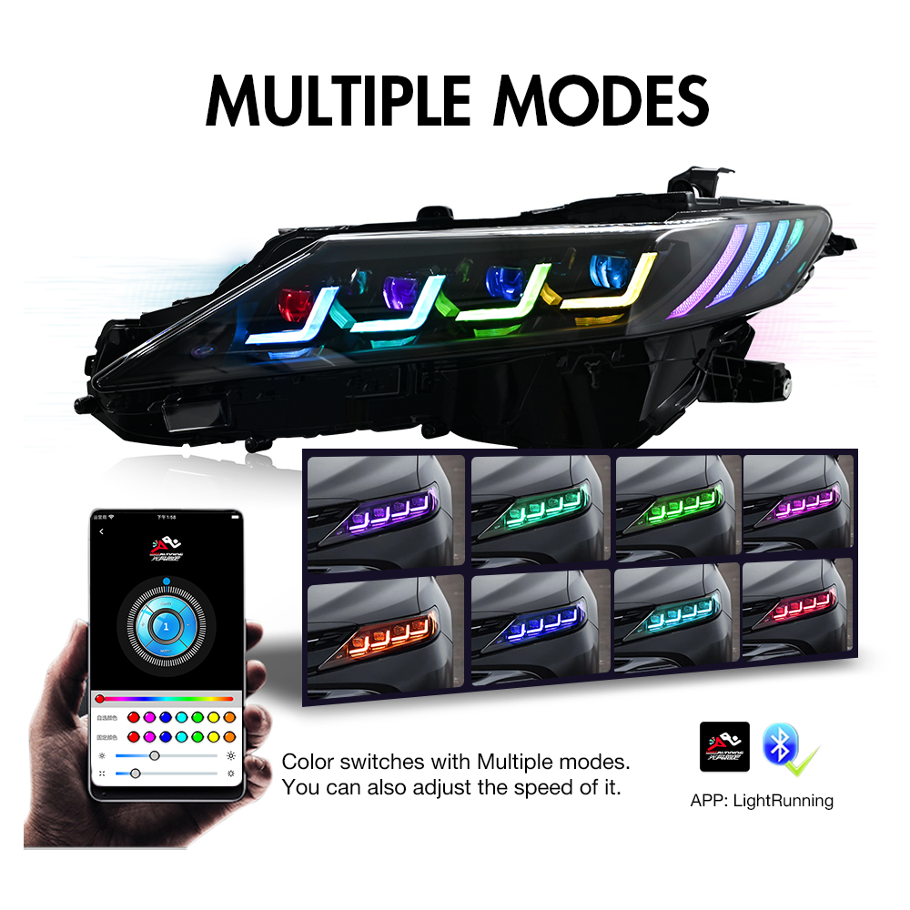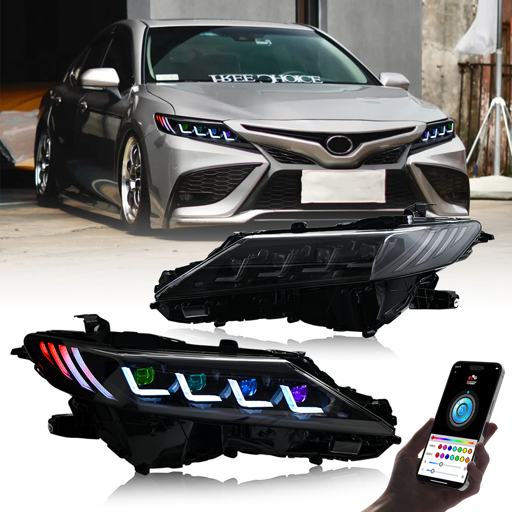 RGB LED Headlights For Toyota Camry 2018-2024 Sequential Turn Signal Front Lamps