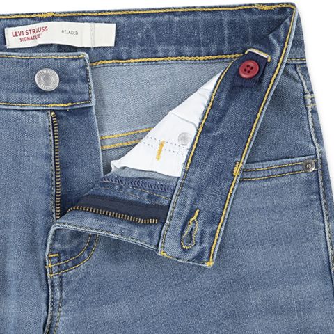 Designed for boys aged 4 to 18, Levi Strauss Signature Boys Relaxed Stretch Jeans combine durability, comfort, and style in one versatile piece. Made from a woven fabric blend of cotton, polyester, and elastane, these jeans offer stretch for unrestricted movement during active play or daily activities. The relaxed fit paired with a mid-rise comfort waistband featuring adjustable sizing ensures a secure and personalized fit. Classic five-pocket styling provides practical storage options while belt loops add versatility for accessorizing. The button front with zip fly closure offers easy wearability. These medium wash denim jeans feature a straight-leg cut that complements casual outfits effortlessly. Machine washable for easy care, they are an excellent choice for boys seeking both function and fashion in their everyday clothing.