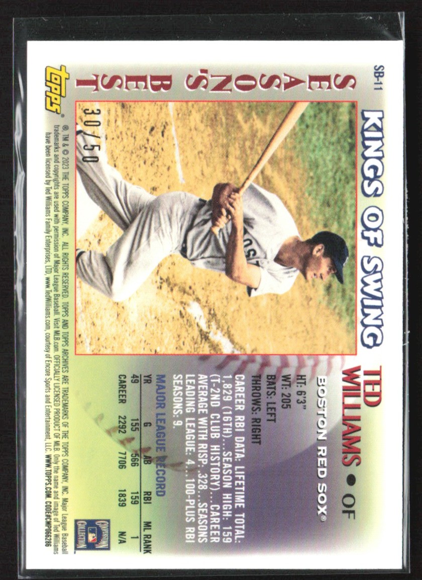 | Ted Williams 2023 Topps Archives Kings of Swing Gold /50 #SB-11 Boston Red Sox |