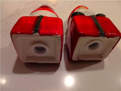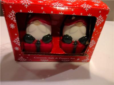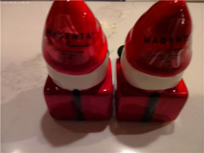 For sale is a set of Santa salt and pepper shakers from Magenta Home. They measure about 4" tall. This set is brand-new and perfect in the box; the box has slight wear. I have a smoke-free home. This is a really cute set!