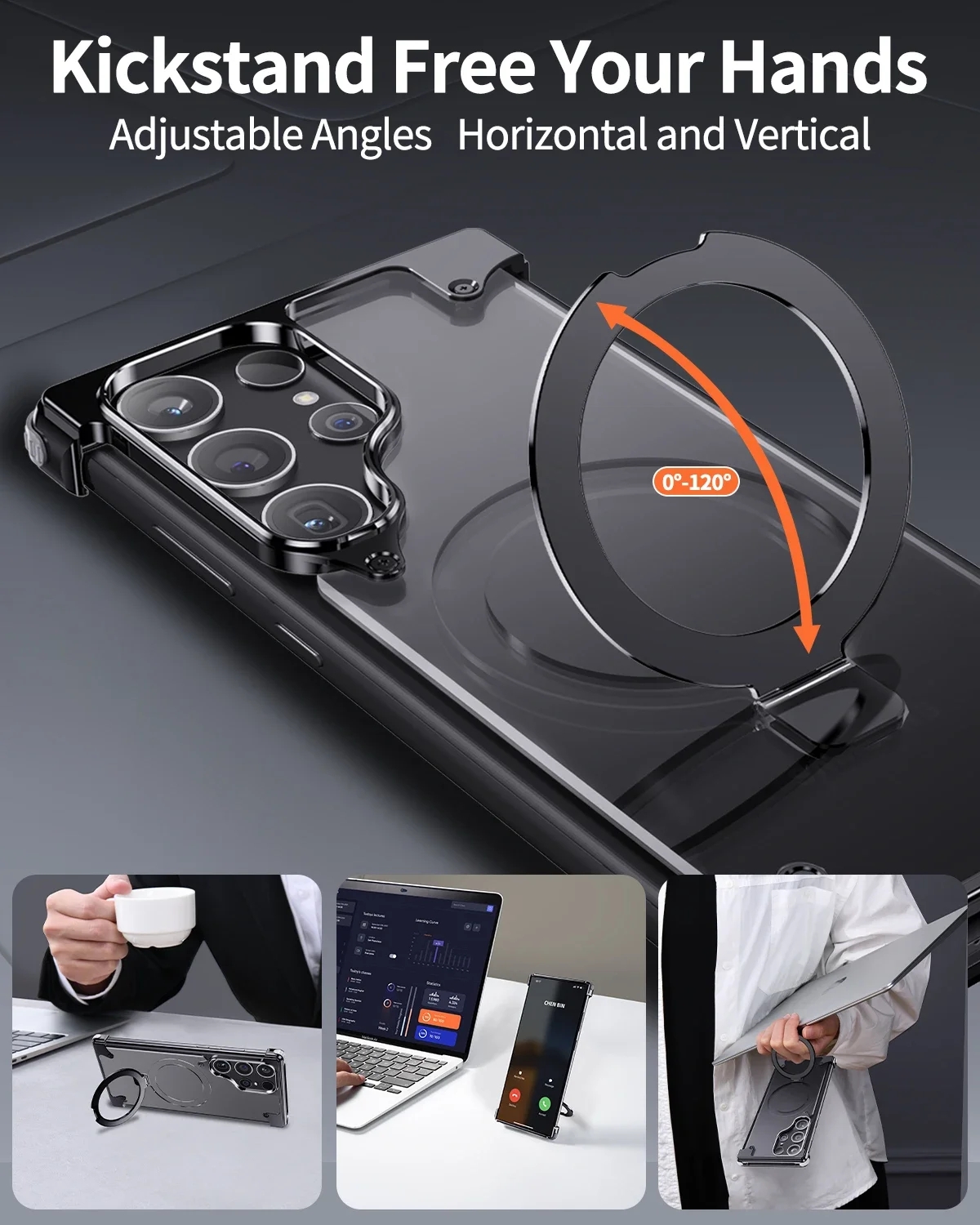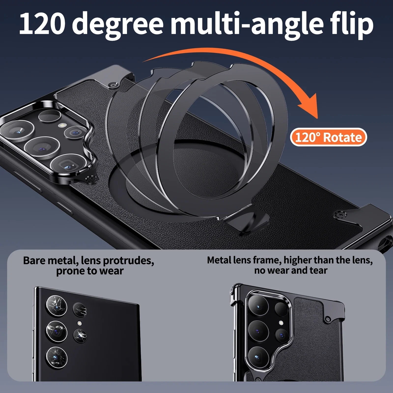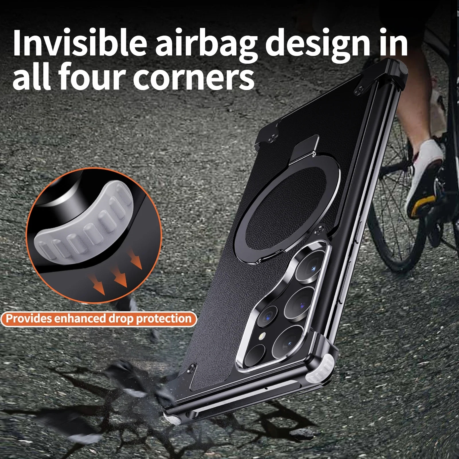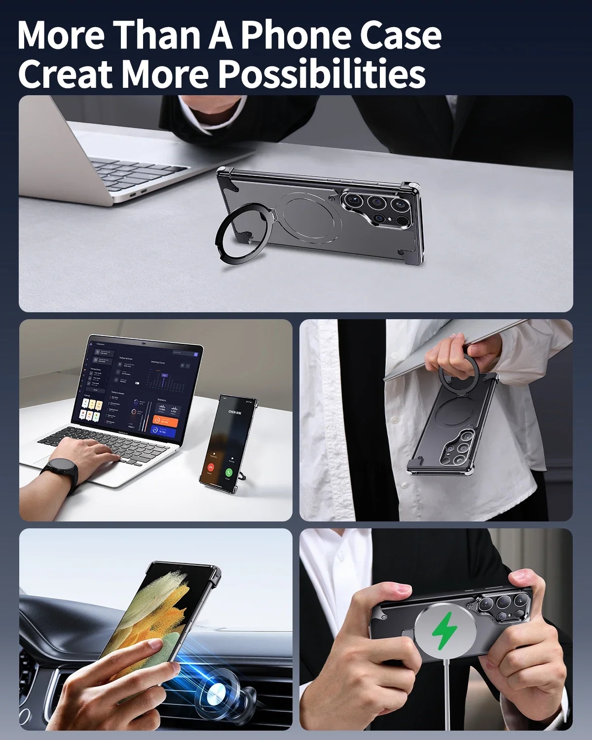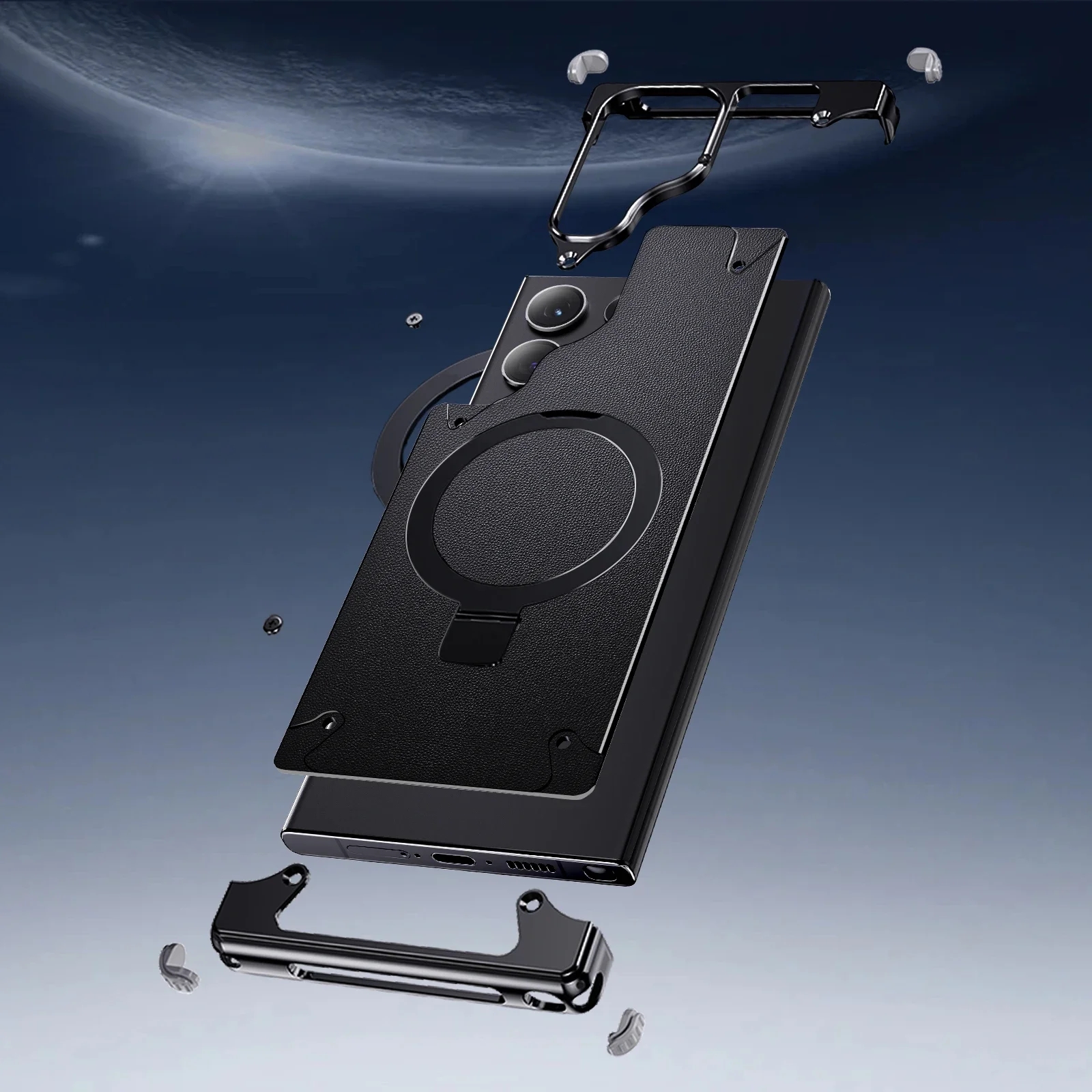 Metal Leather Phone Case For Samsung Galaxy S23 Ultra S24 Ultra Translucent PC Magnetic Ring Holder Wireless Charge Phone Covers