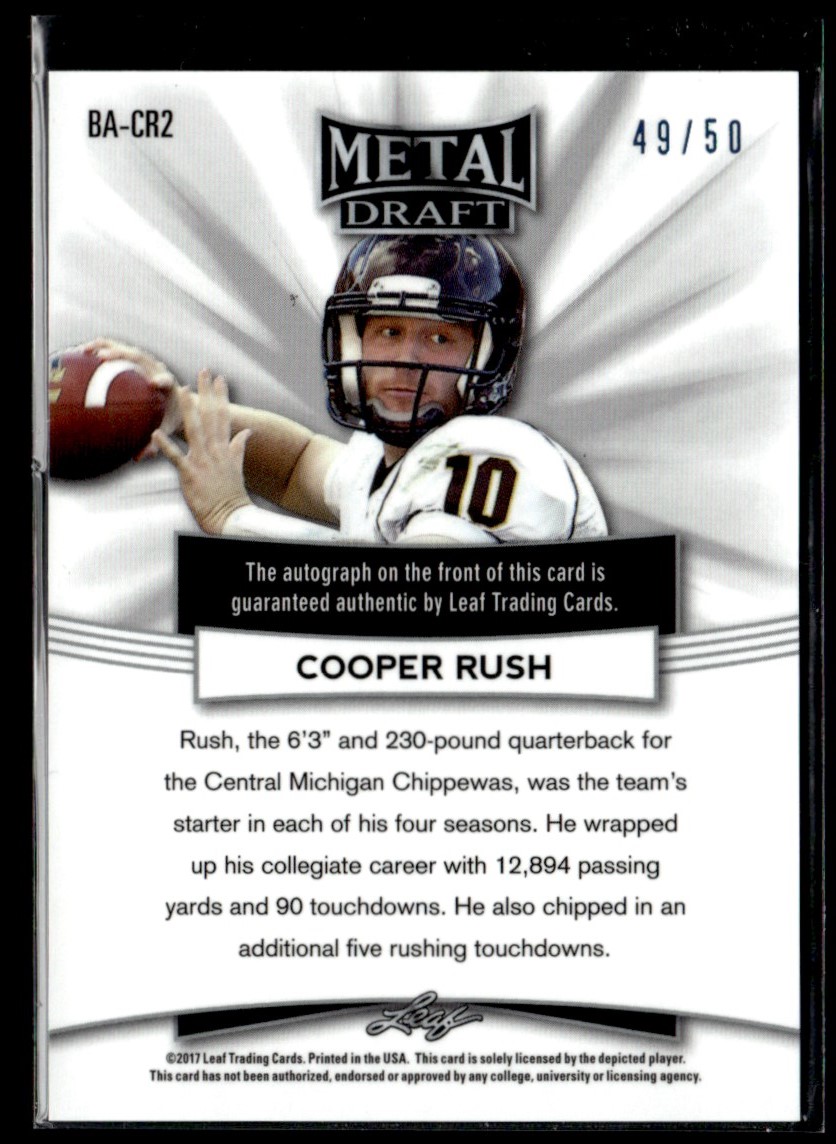 | Cooper Rush 2017 Leaf Metal Draft Autographs Blue Auto /50 #BA-CR2 Central |