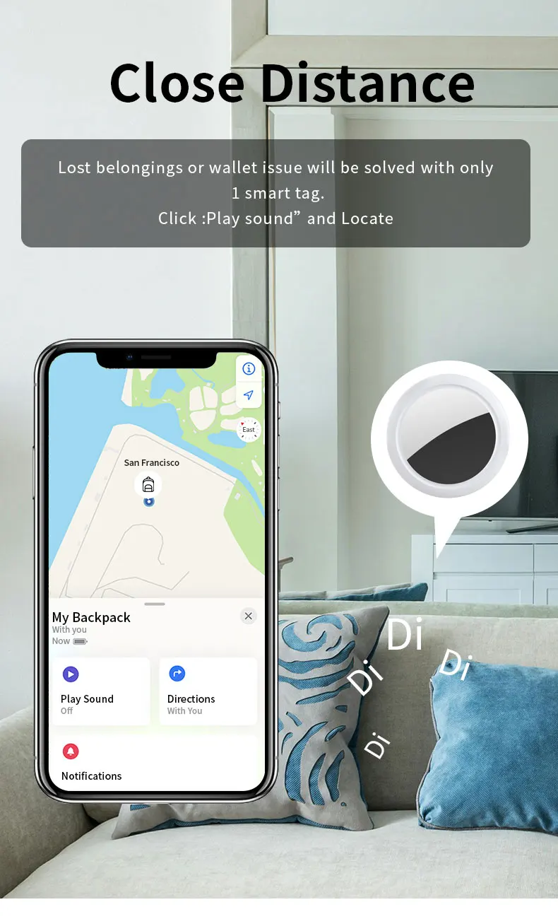 【Left-Behind Reminders】Ever left your wallet or luggage behind in a rush? Our tracking tag's left-behind reminder feature ensures that you never forget your belongings again. If you move away from your tracked item, your smartphone will send you a notification, reminding you to retrieve it before it's too late.