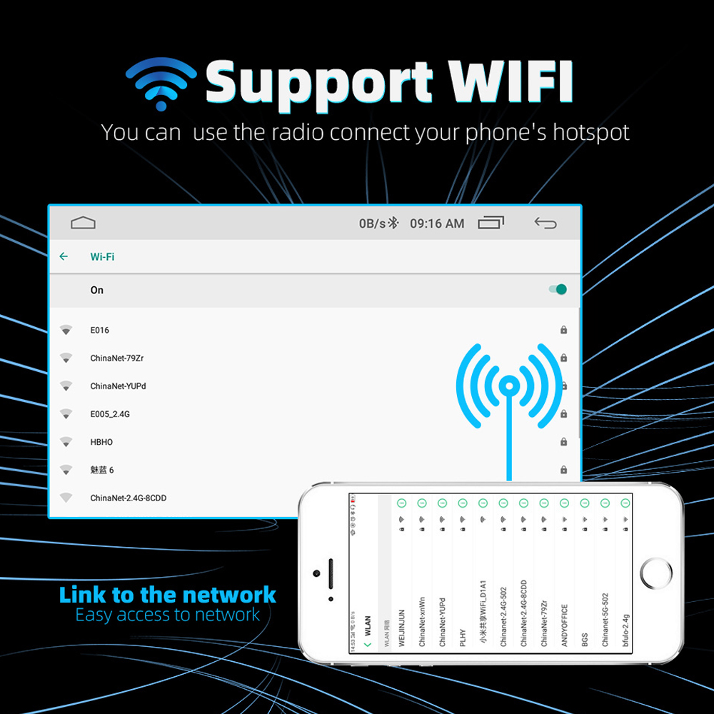 ●FM Radio: Online music you can transfer the music to the car stereo by FM to enjoy the original car stereo sound,with 18 preset stations