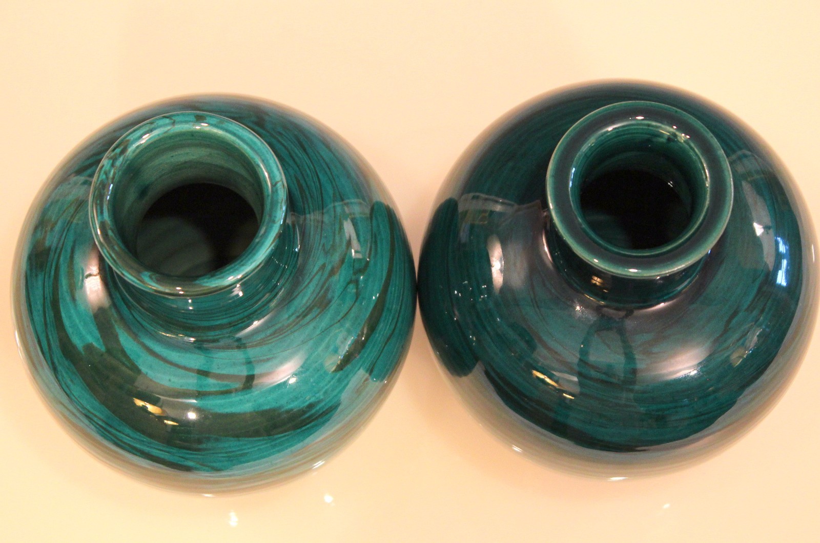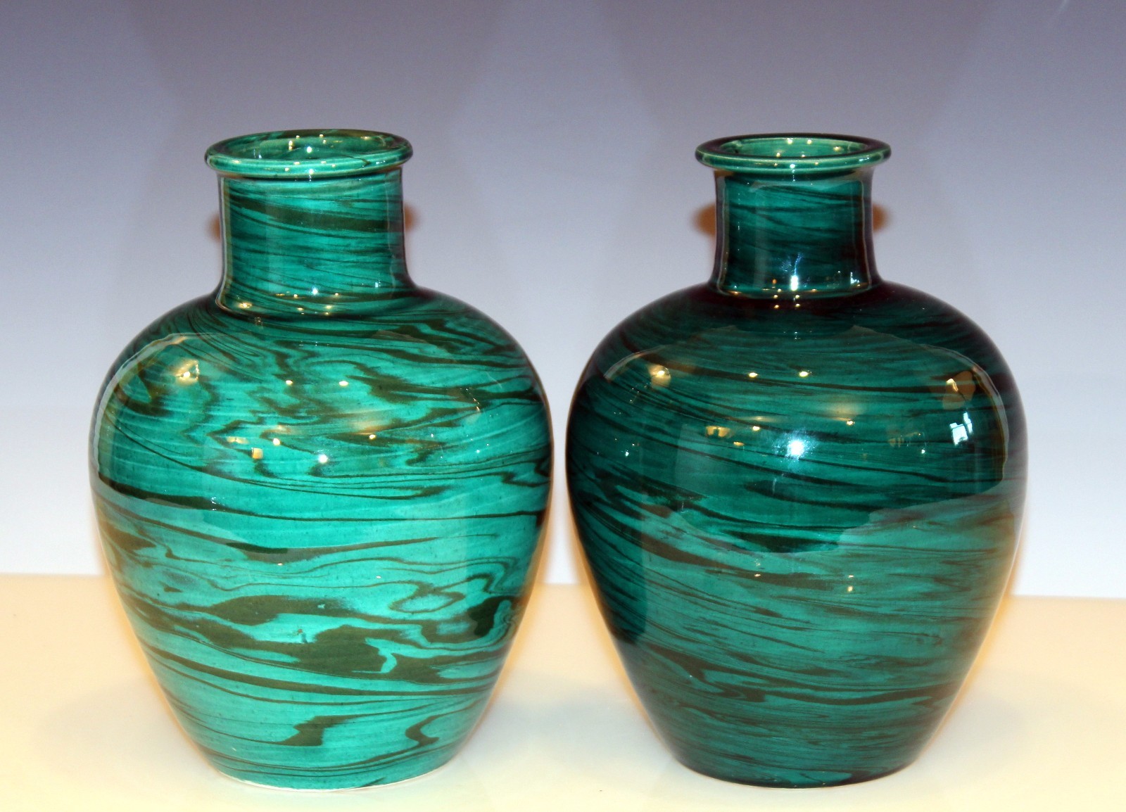 Bitossi Pair MCM Raymor Vintage Italian Pottery Marbled Green Marbleized Vases