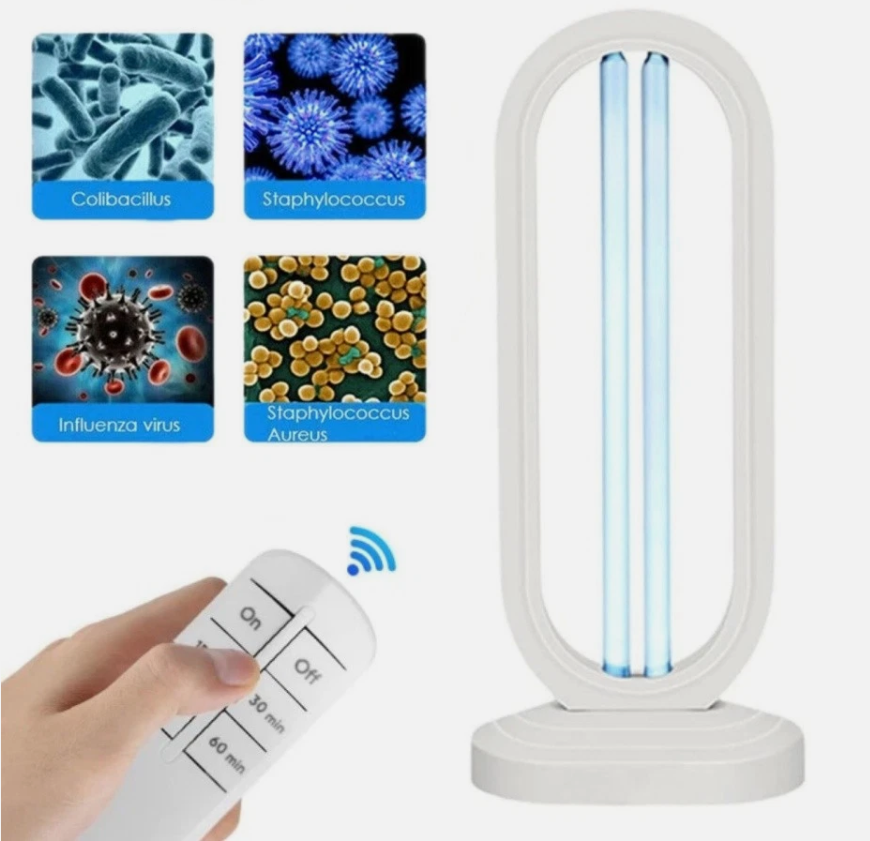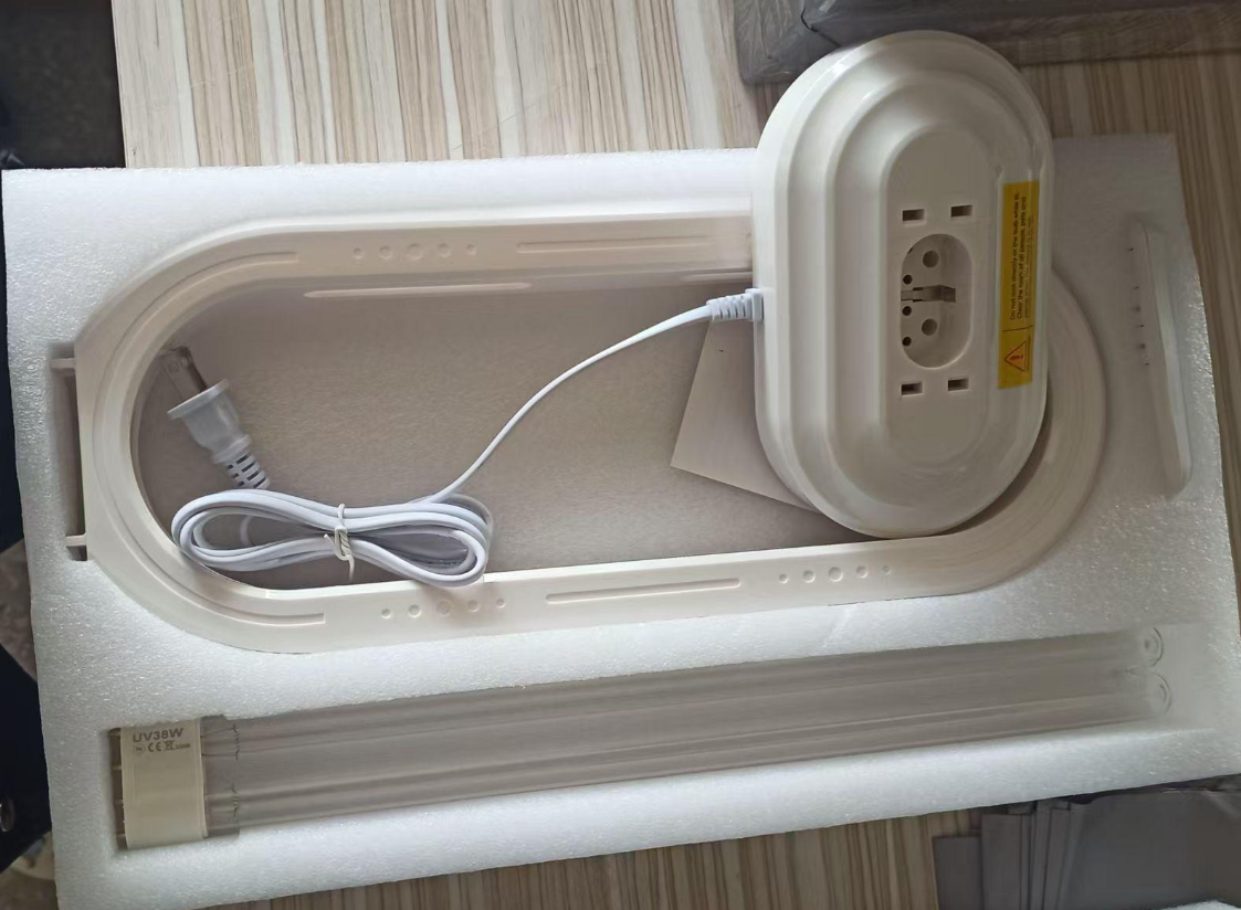 Product Description: -The capacity of 38 W is suitable for 10-25 sqm space, living room, bedroom and other household space, 15min rapid sterilization and disinfection. -Germicidal light produces ozone during work. Ozone can sterilize places where ultraviolet light cannot reach, but ozone is harmful to the human body. After disinfection, the room needs ventilation of 60 minutes. We recommend to use it for cabinets disinfection. -There are two types of control methods available. -Use UVC sterilizer light, 360 ° degrees wider beam angle, it completely Removes Odors and Dust Particles, effectively improve your living environment. -The widened and thickened base for more stable standing. Specicifation: Chroma: blue Rated power 38W Rated voltage 110V (US standard) Rated frequency 50HZ Control Method: timer/remote control Material: ABS+quartz