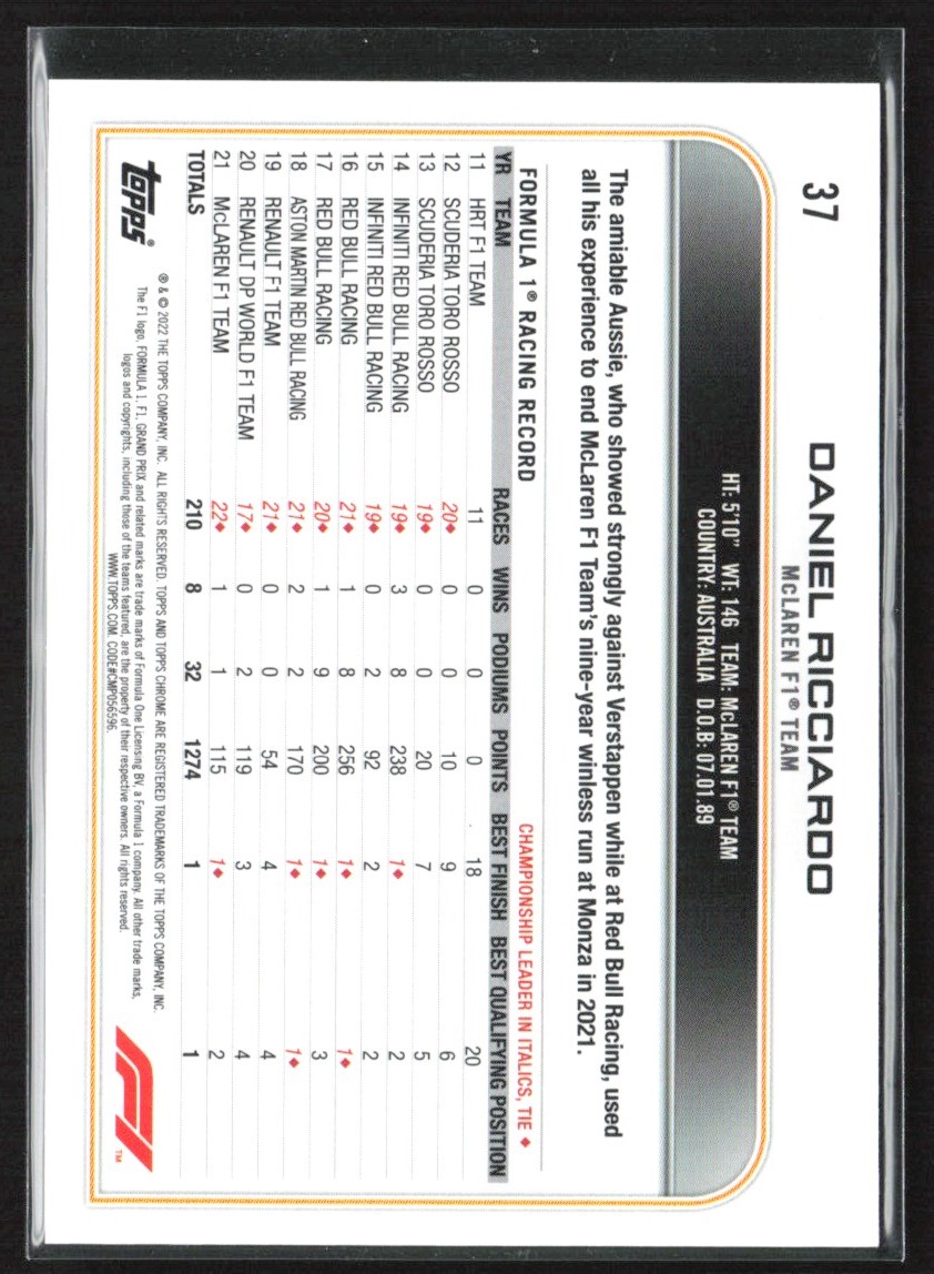 | Daniel Ricciardo 2022 Topps Chrome Formula 1 Checker Flag F1 B #37 McLaren |