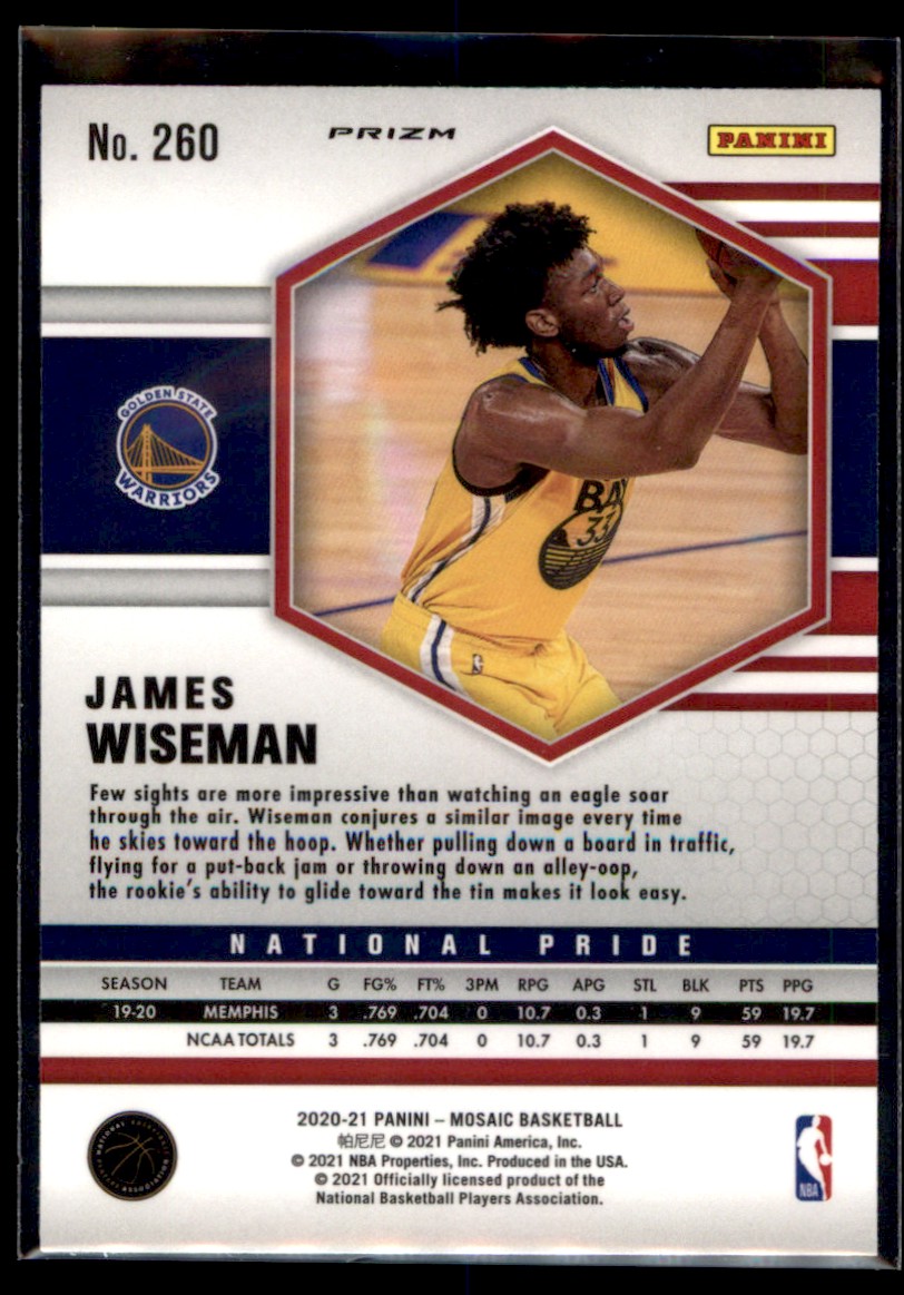 | James Wiseman 2020-21 Panini Mosaic Red Prizm RC #260 Golden State Warriors |