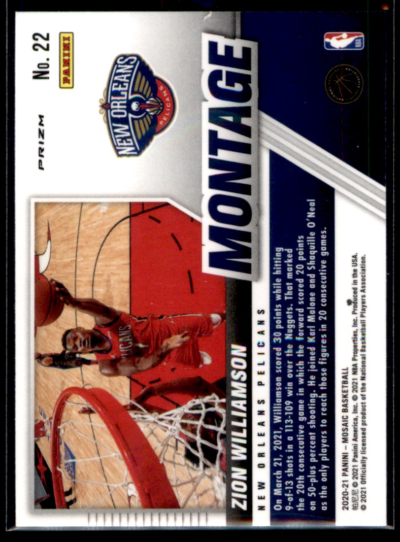 | Zion Williamson 2020-21 Panini Mosaic Montage Silver Prizm B #22 New Orleans |