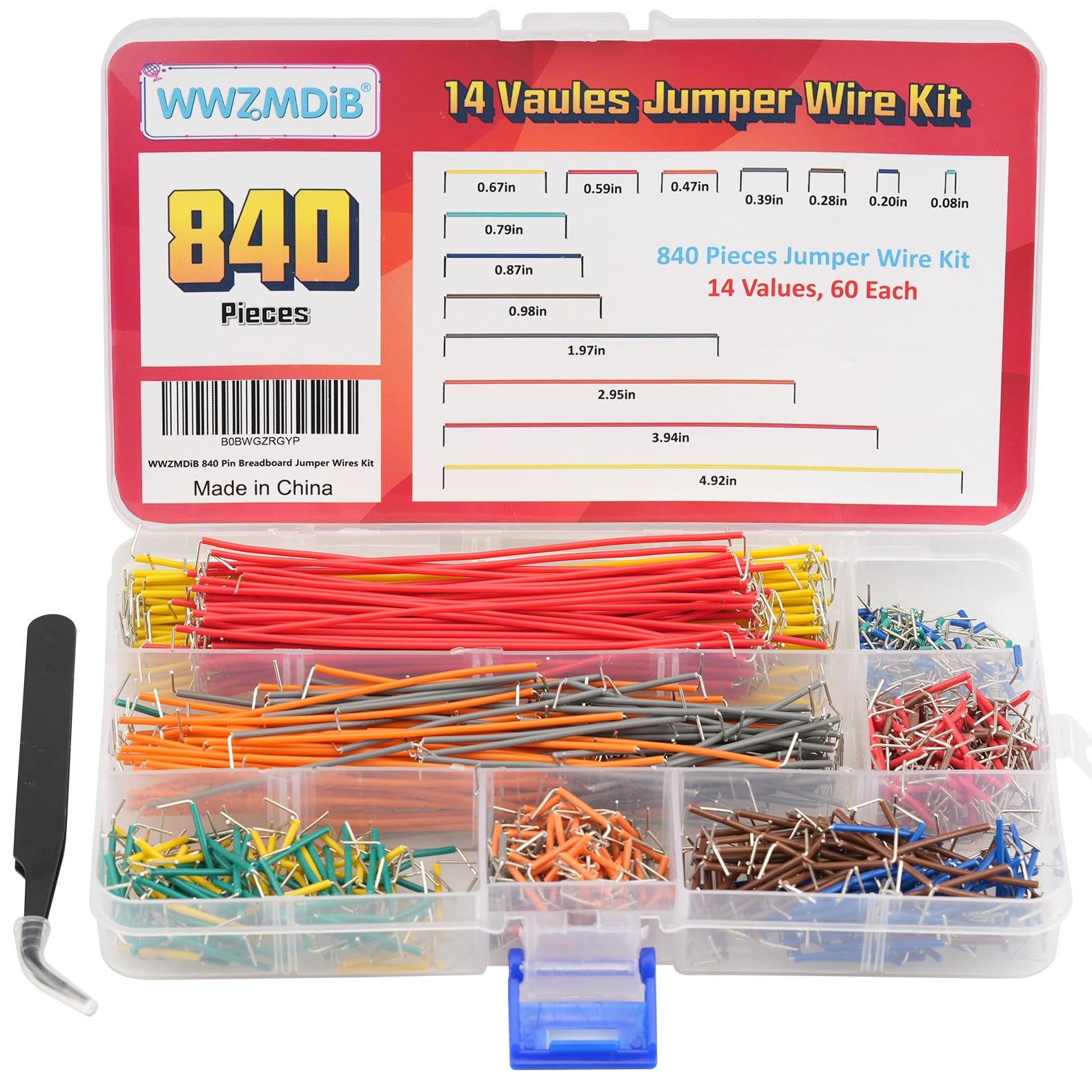 【Product name】:high quality 14 Values 840 Pcs Breadboard Jumper Wires Kit work well with any breadboards or anywhere jumper wires are needed, perfect for breadboard projects【Package content】:2/5/7/10/12/17/20/22/25/50/75 /100/125mm each 60Pcs ; 1 x Tweezer ;Plastic Dispenser Box;【Easy to use】: all the colored jumper wire are pre-stripped and preformed right-angled, easy to insert it into breadboard【Scope of application】: computers, electronic communications, instruments, meters, industrial program control, digital cameras, MP3, card readers, DVDs, LCM/LCD displays, electronic toys,PCB project, pc motherboard etc【Extra bonus】:Free a plastic box, convenient for jumper storage; free tweezers for breadboard testing⚡【Note】: the breadboard wire is a little soft so that convenient for changing its shape to do connect test; if you find that it can't be inserted, please check whether the cable in the pin hole of the breadboard is in good condition or not【Wholesale Business】:We have been engaged in the wholesale and retail business of electronic related products for a long time. Welcome letter to discuss wholesale business. The larger the amount, the better the price.