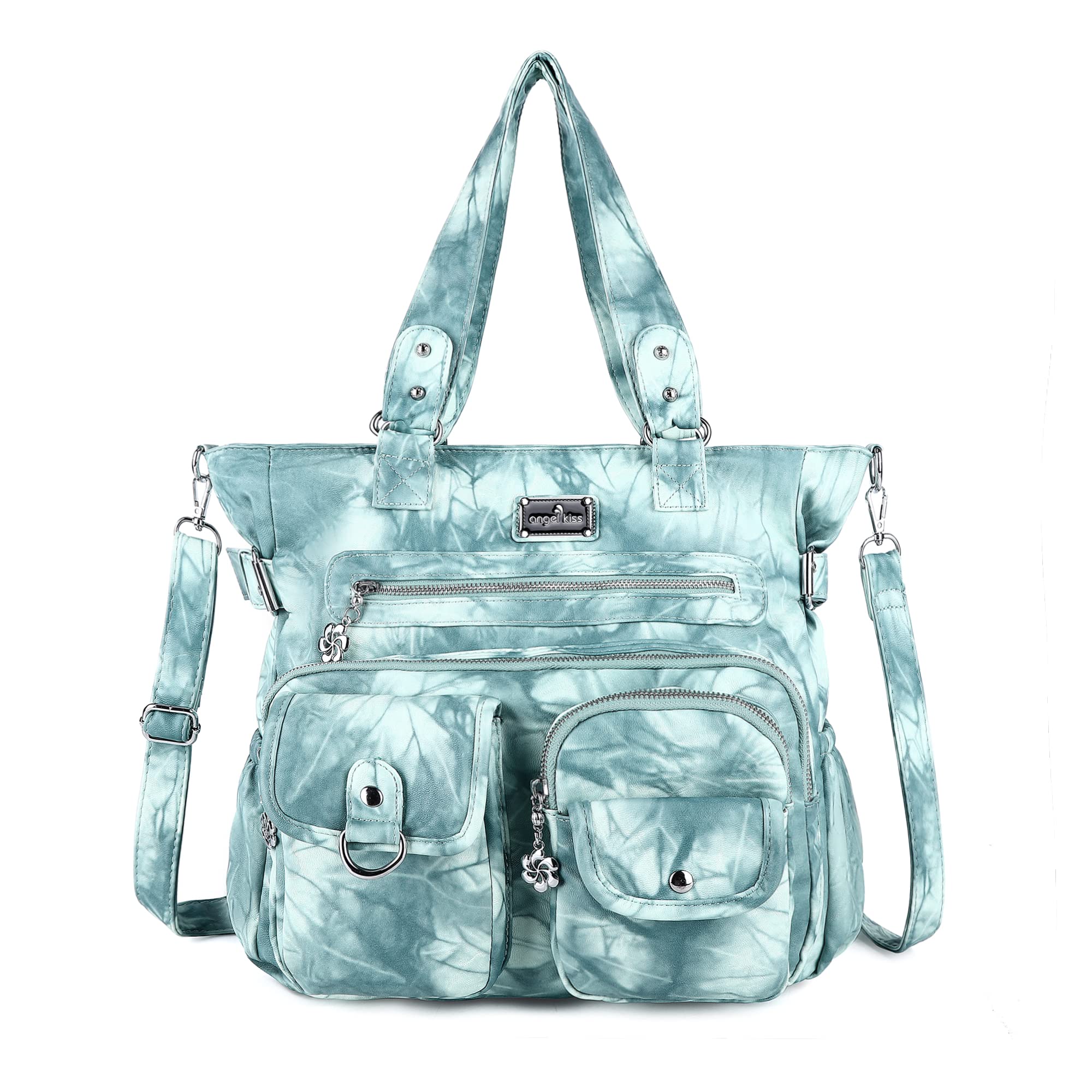 Angel Kiss Purses Handbags for Women PU Tote Satchel Bags for Women Pockets Shoulder Bags-Blue&Green,Large