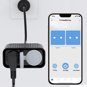 【Double Plug Outlet with Remote Control】: Homekit, Google Assistant, Alexa for Android phones and Apple phones. No hub or subscription required; supports voice control and remote control. It stays connected even when you're not at home. If a connection error is reported, you can first unplug the socket, then plug it back in and leave it in for at least 5 seconds for the next pairing. Press and hold the switch button.