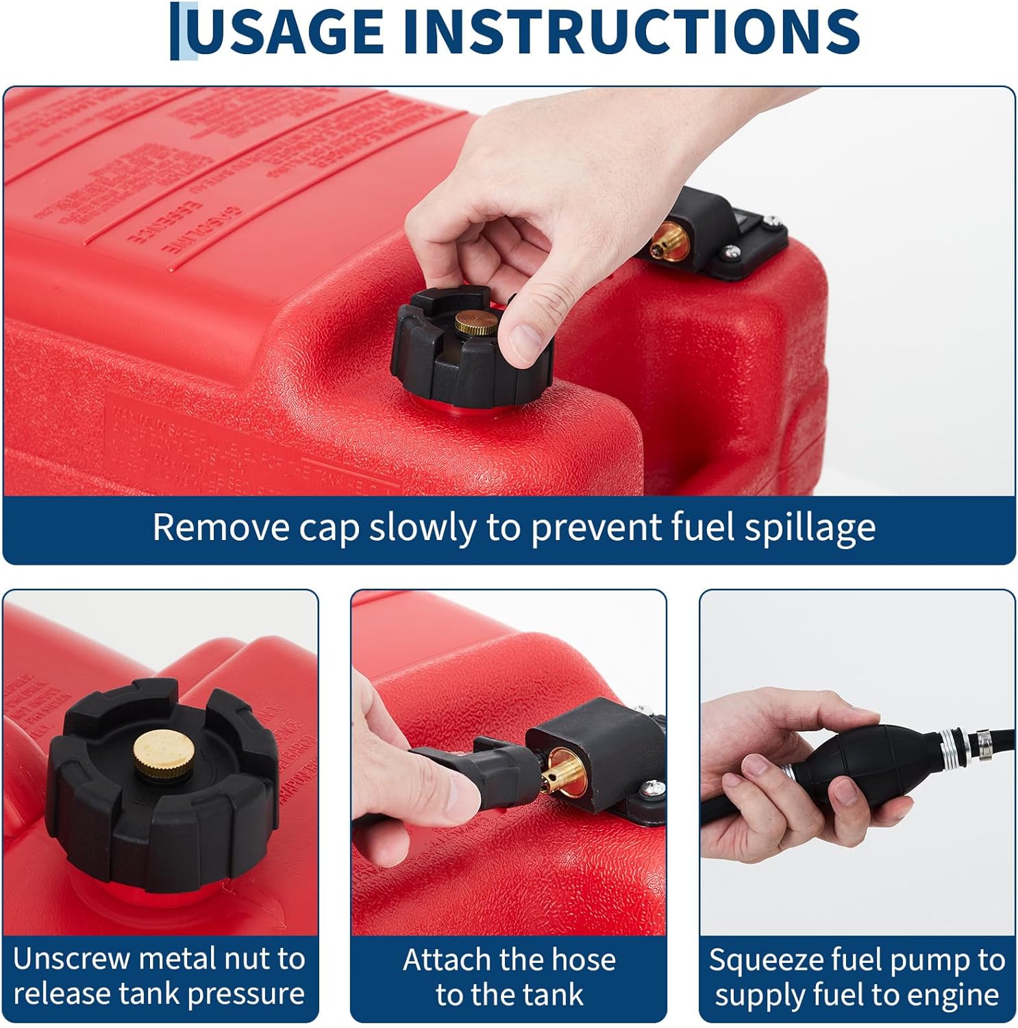 Marine tank includes a fuel pipe and manual squeeze pump—simply squeeze the pump to fill the tank effortlessly, offering hassle-free operation and unparalleled convenience for marine use.