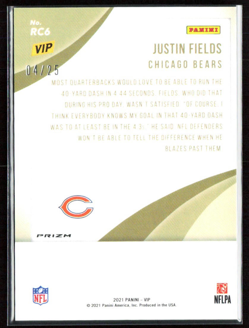 | Justin Fields 2021 Panini VIP Pandora Camo Prizm RC /25 #RC6 Chicago Bears |