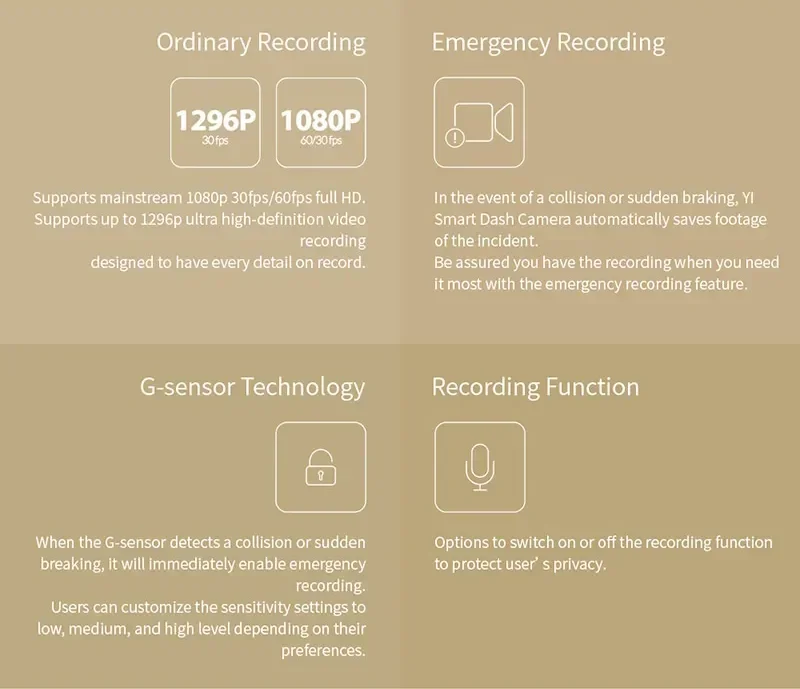 The AI voice command technology made by YI makes voice control easy and efficient. It currently supports video recording and emergency image capture, with more capabilities coming in future firmware updates.