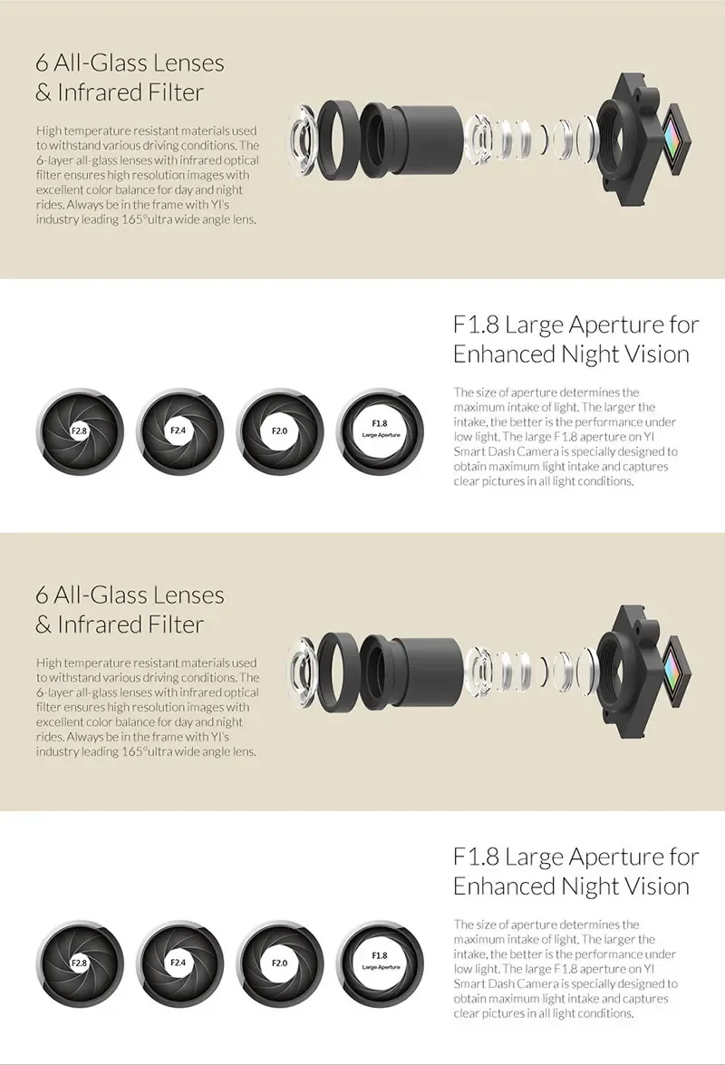 Lens: F1.8 aperture / FOV(diagonal)165 degree wide-angle glass lens