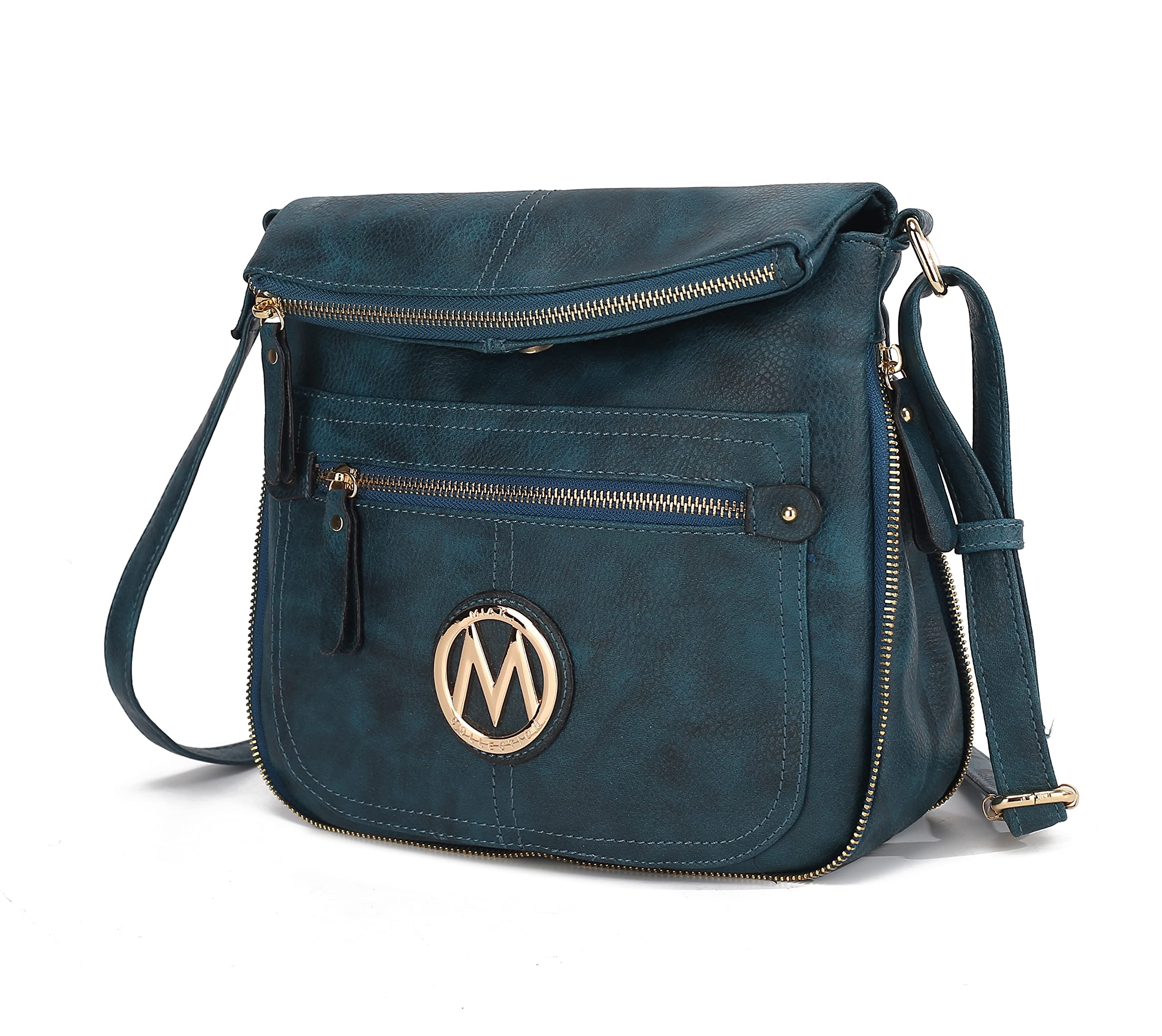 MKF Collection Crossbody Bag for Women, Vegan Leather Messenger Purse – Designer Pocketbook Handbag Shoulder Strap Teal Blue by Mia k
