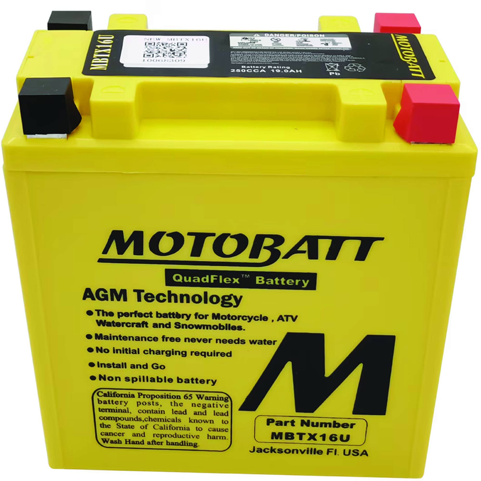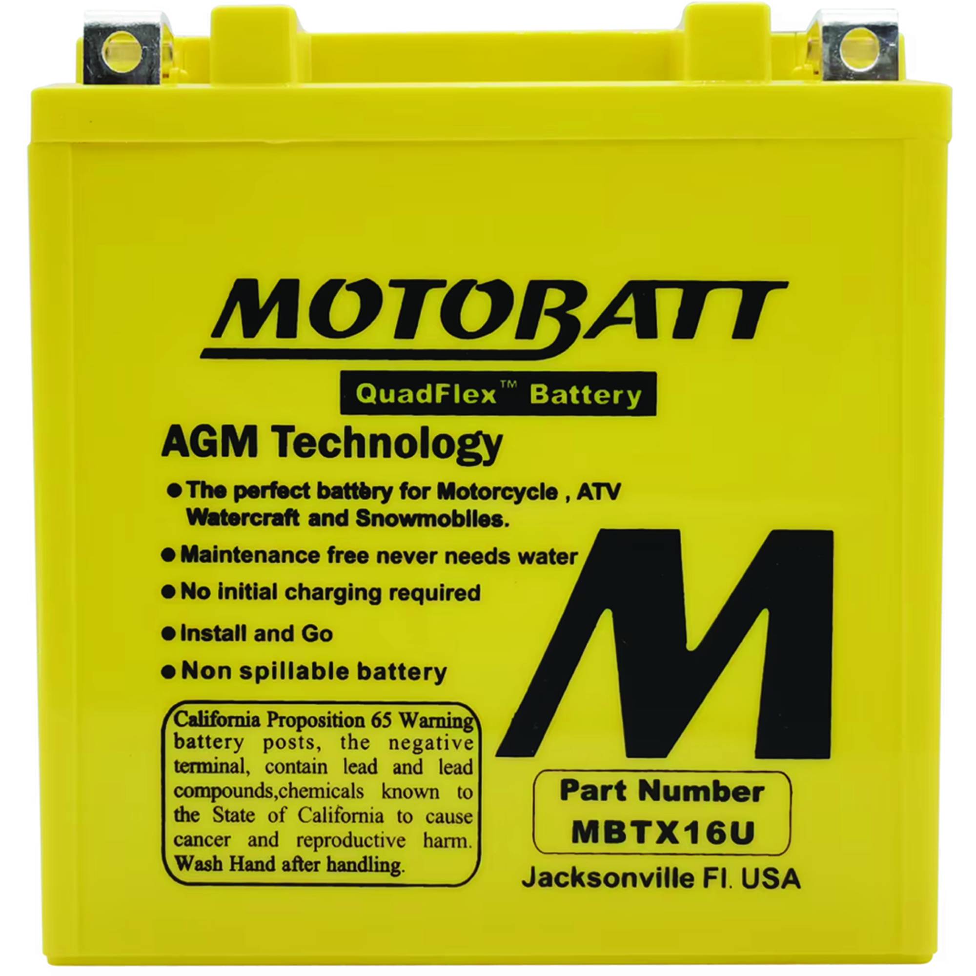 Powersports enthusiasts are all about get-up-and-go action! Motobatt batteries exemplify the powersports lifestyle. Simply install and go. Motobatt batteries without any initial cranking required. Once installed, you don't have to worry about acid leaks or spills because Motobatt batteries come sealed from the factory. You never have to fill or top-off a Motobatt battery.