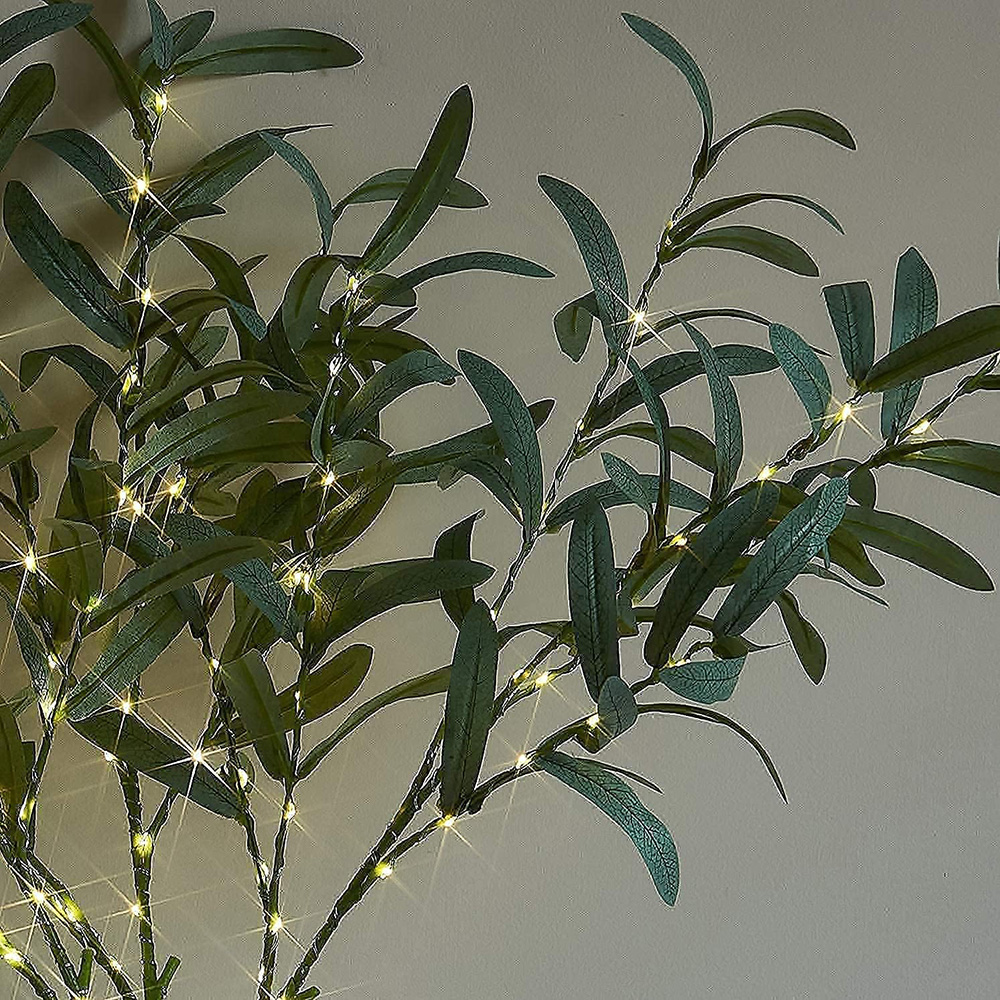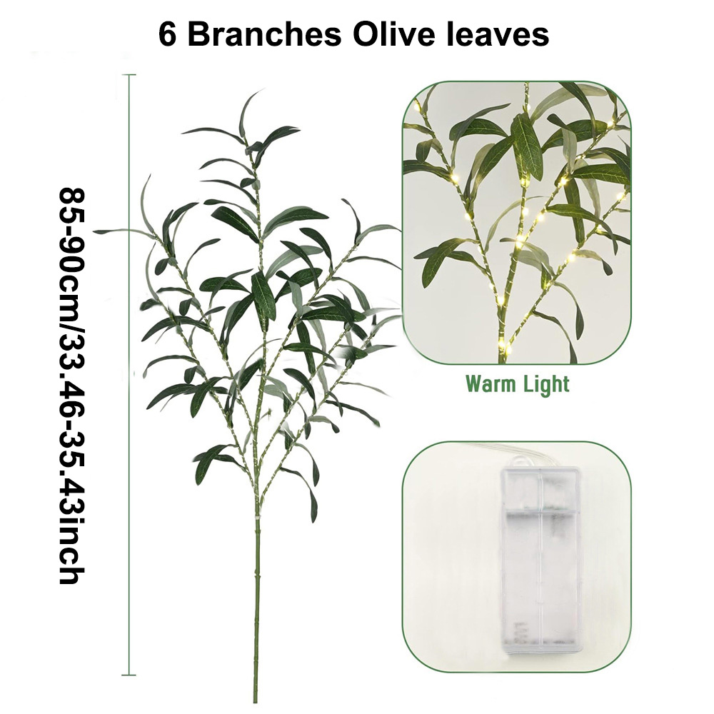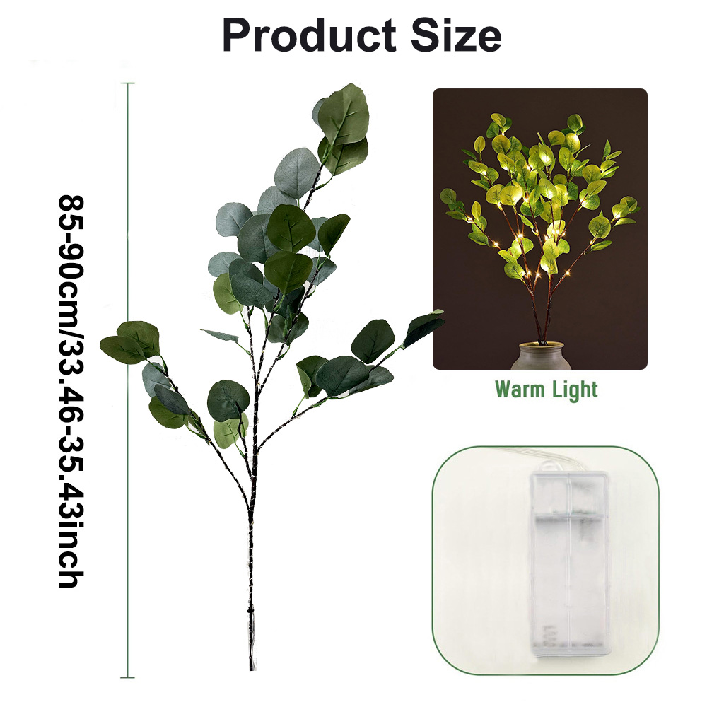 1/2/3 Pack Lighted Artificial Eucalyptus Branches Olive Branches Lighted Branches Lights Night Light for Home Description: Features: 【Lifelike Handmade】 Olive tree light branches is a handcrafted high-quality product with lifelike leaves and 【Exquisite Appearance】The lighted eucalyptus branches are a handmade high-quality product with lifelike 【Battery Operated】Unlike other plug-powered lamps, this artificial light is powered by AA batteries. You can 【You can DIY】The lighted tree branches with warm white LED lights. The texture of these artificial indoor 【Suitable for a variety of scenes】The branch lights can be used as a decoration when the lights are not on Specifications: Materials: Plastic Light Color: Warm White Power Supply: 2 x AA battery(Battery not included) Size: Olive leaf branch: 38cm(14.96inch)/45cm(17.72inch)/85cm(33.46inch) Eucalyptus Branches: 85cm(33.46inch) Package includes: 1/2/3 Pack Branches Light