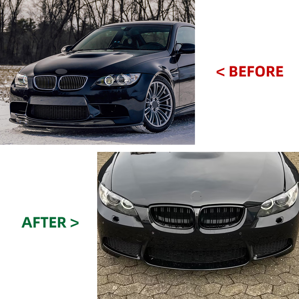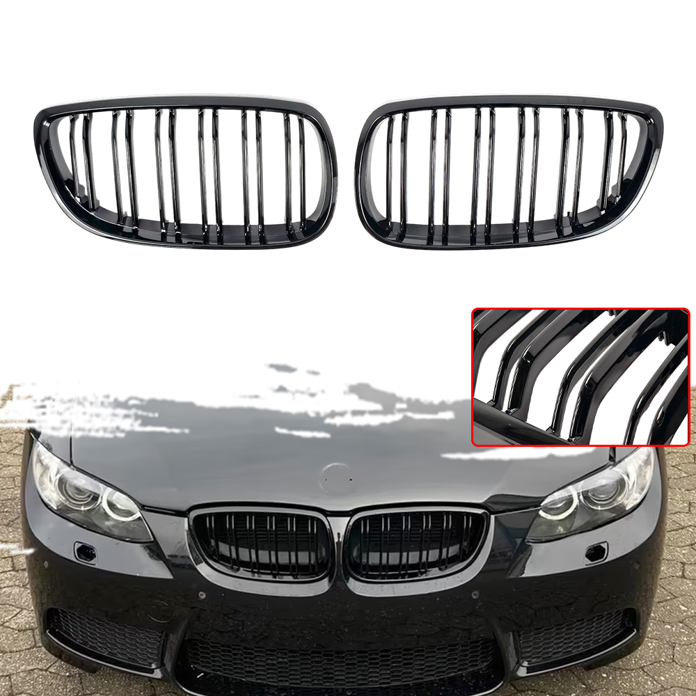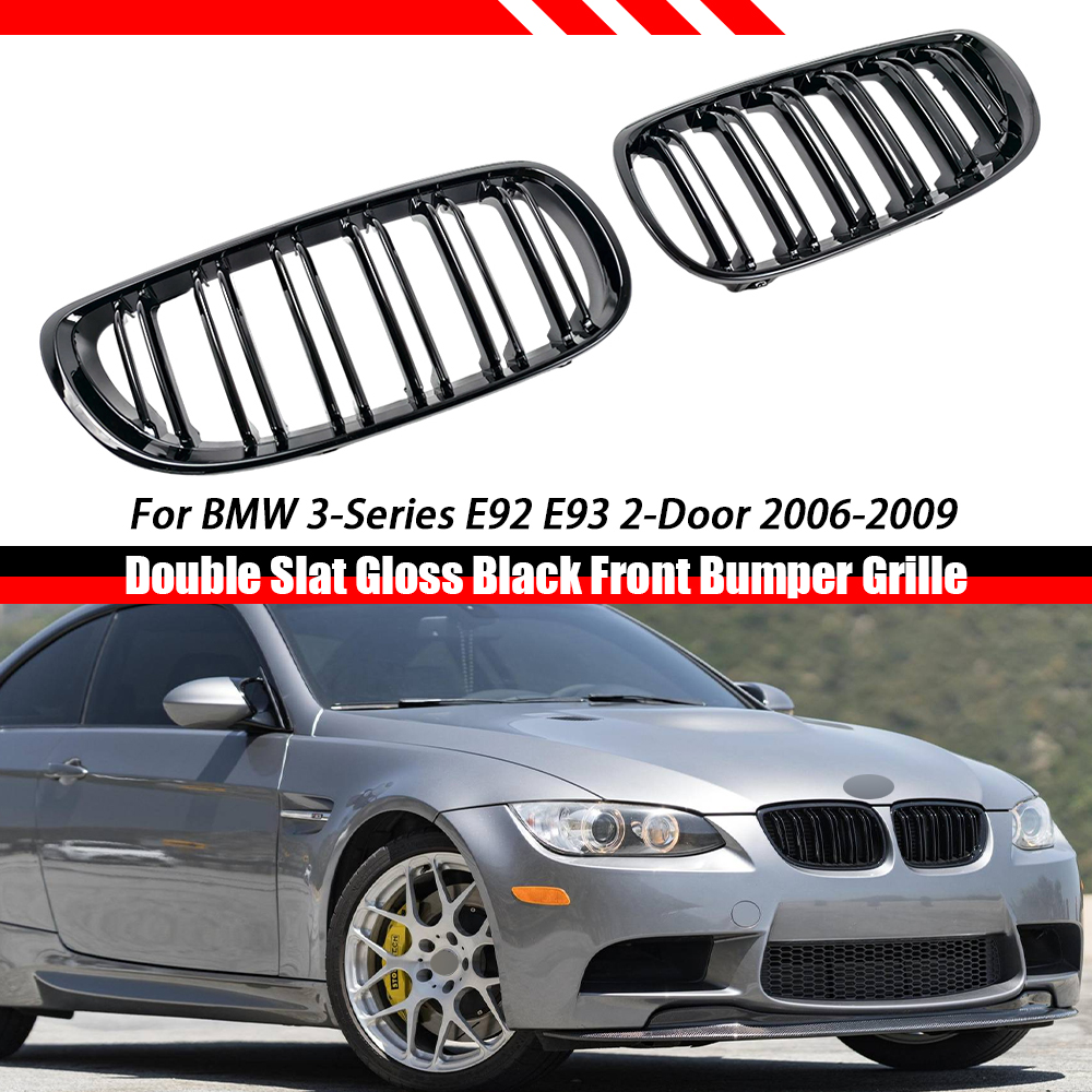 Doppellamellen-Frontstoßstangengrill, glänzend schwarz, oben, mittig, Ersatz für BMW 3er E92 E93 2-Türer (2006–2009)