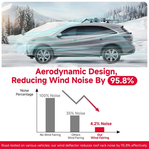QUIET & AERODYNAMIC - Rack Wind Fairing has been engineered to minimize wind noise while driving. Hearing the whistle of wind running through the load you're transporting can take away the fun of driving.