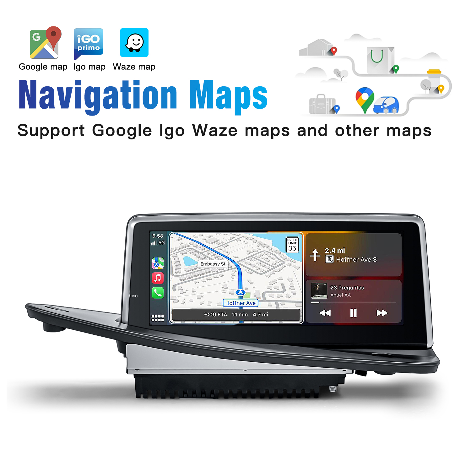 Support third party map as Google map,Igo map or others