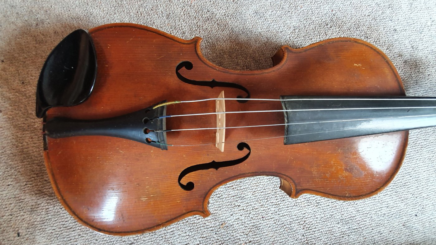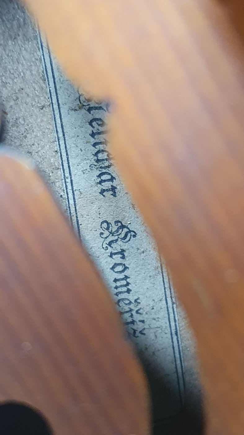 Nice old violin , with a beautiful 1 part back. The label inside reads:"Jos Melichar Kromeritz". The instrument needs cleaning and service. There is a small crack at the front. (see photos) . The back is nicely flamed. The overal length is : 58,3cm; (23 inches) length of the body:35,6cm. (14 inch)