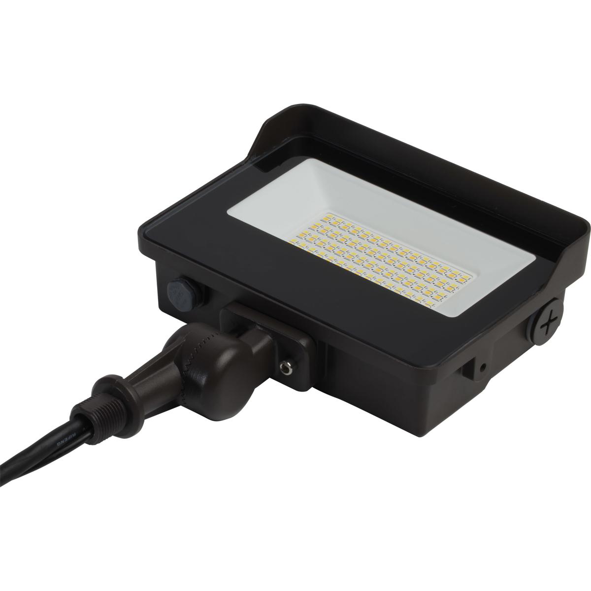 LED Tempered Glass Flood Light with Bypassable Photocell; CCT Selectable 3K/4K/5K; Wattage Adjustable 15W/25W/35W; ColorQuick and PowerQuick Technology; Bronze Finish