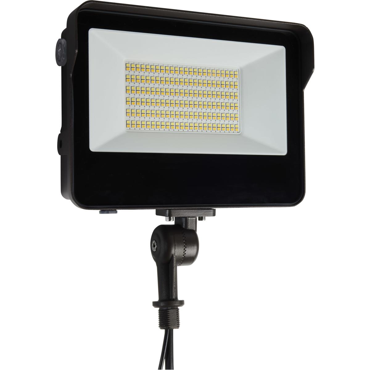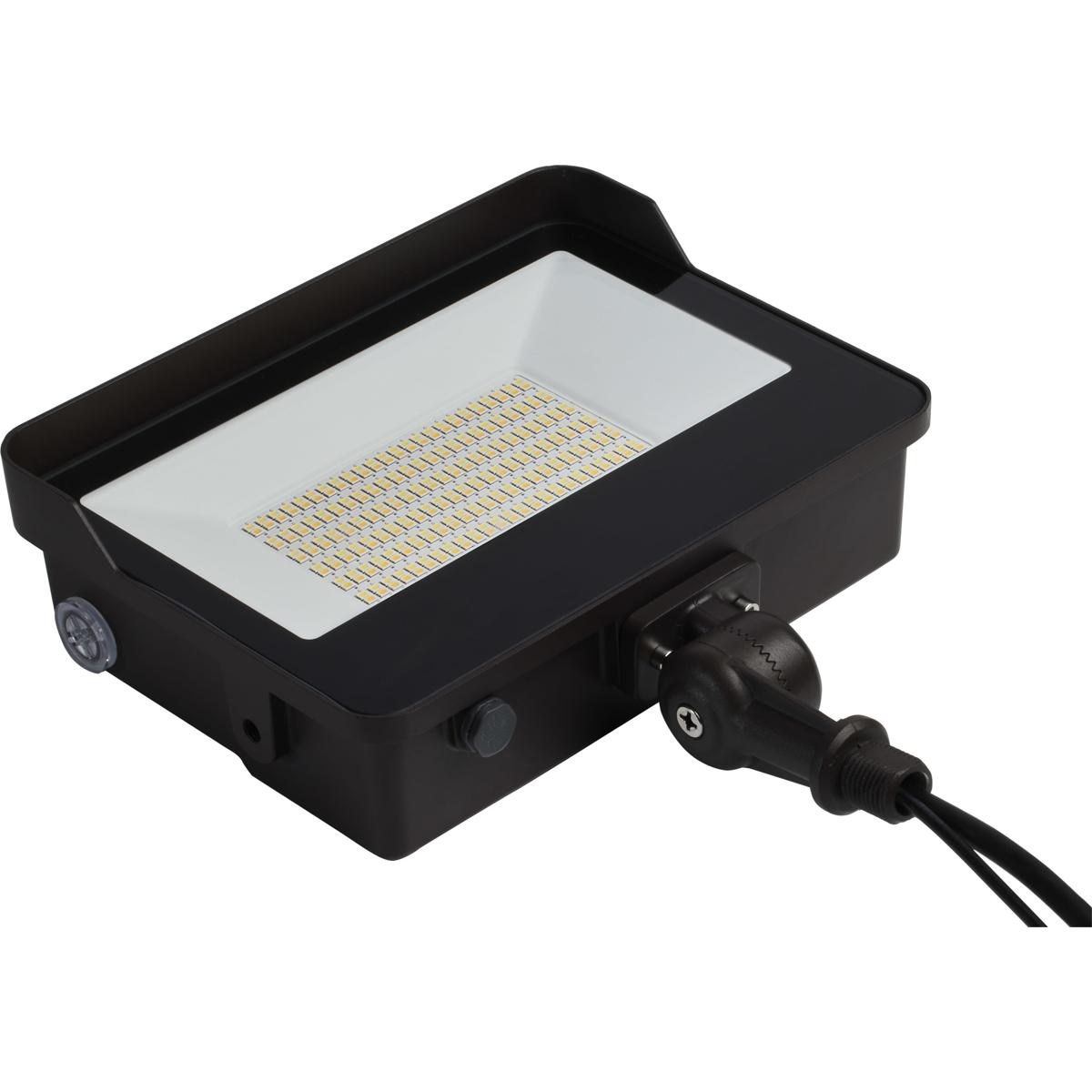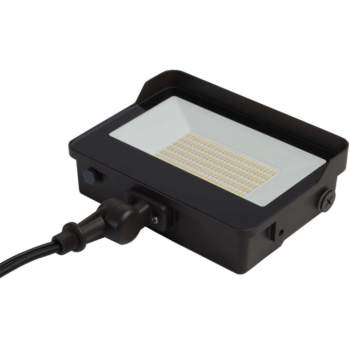 LED Tempered Glass Flood Light with Bypassable Photocell; CCT Selectable 3K/4K/5K; Wattage Adjustable 45W/60W/80W; ColorQuick and PowerQuick Technology; Bronze Finish
