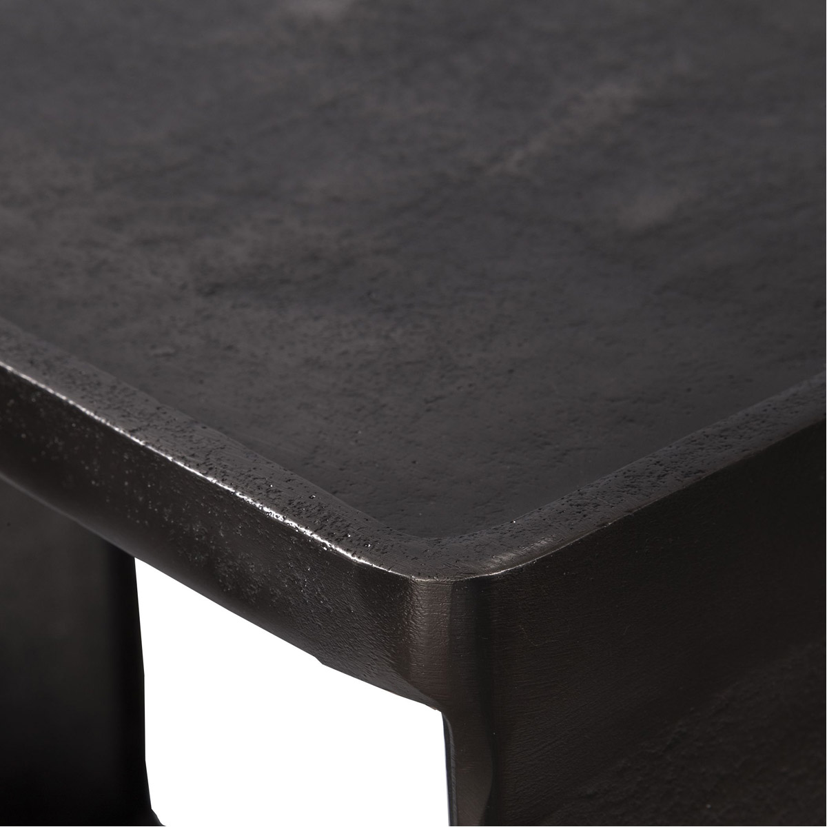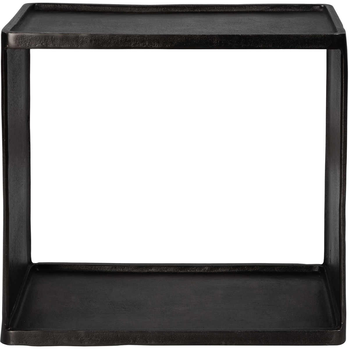 Taking Inspiration From Industrial Style, This Cast Aluminum Accent Table Features A Masculine Look With A Tray Style Top In A Dark Antique Nickel Finish. The Open Center Allows For Extra Display Space.