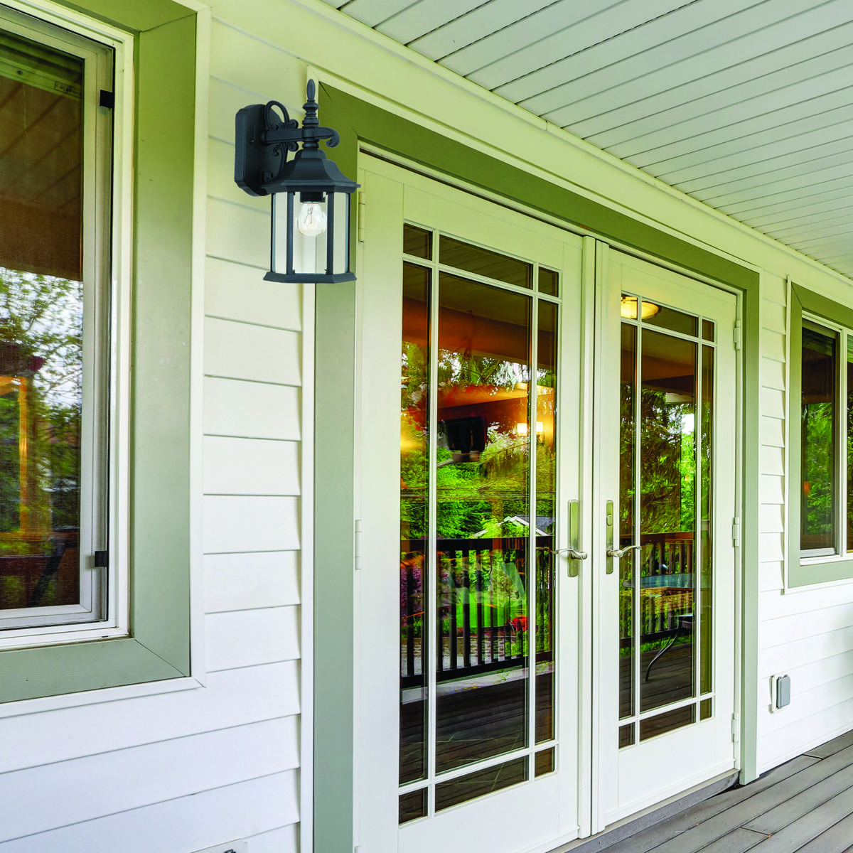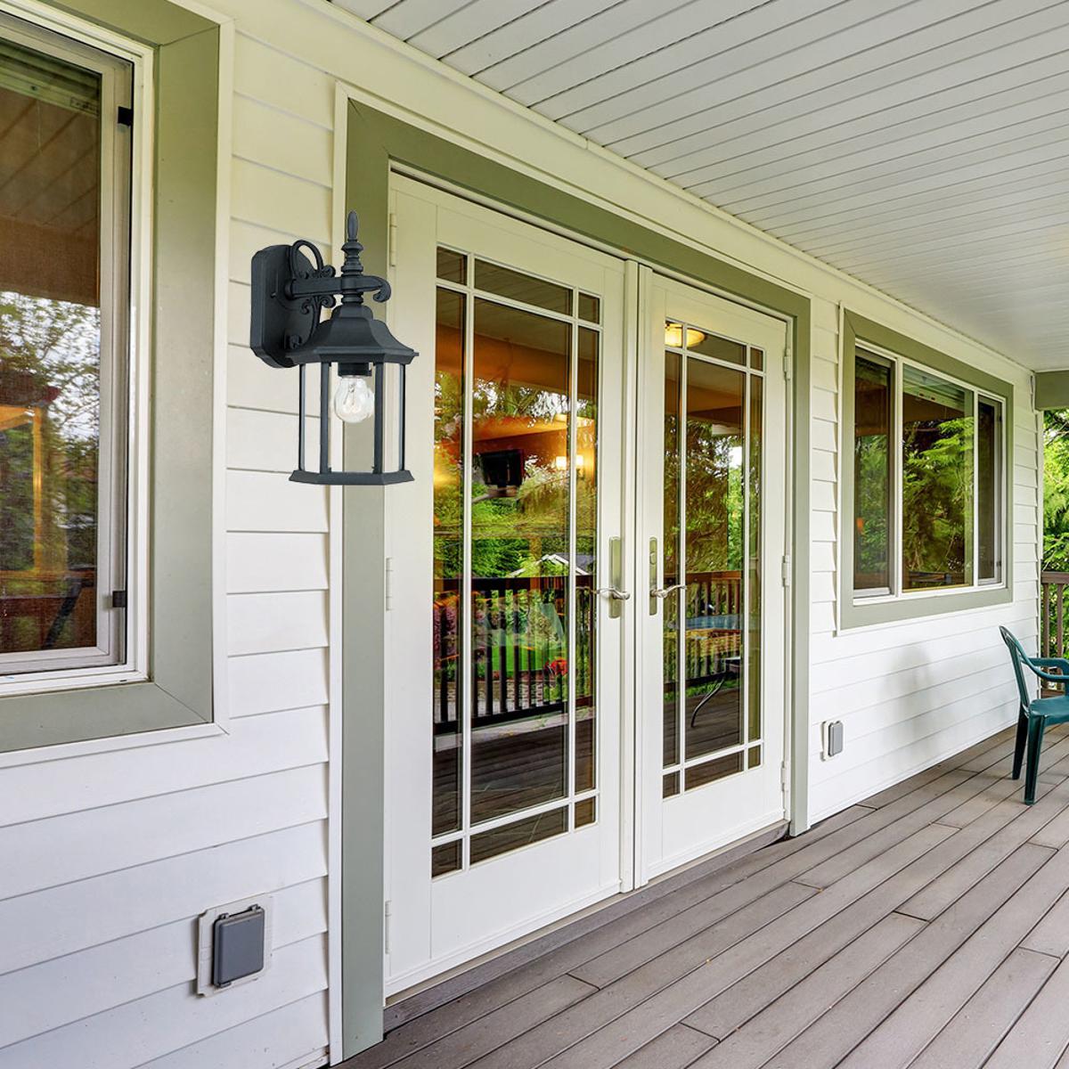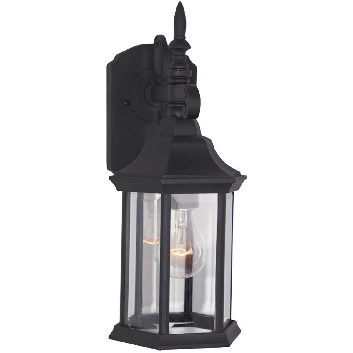 Erving outdoor lanterns feature an elegant 6 sided design with a bold arm and exquisite detailing that complements the decor of any home. The clear glass works with the finish and detailing to provide a classic look from the fixture and a warm glow from the light. The solid black finish is treated to prevent pitting, tarnishing, corrosion, and discoloration. The sturdy, weather resistant cast aluminum construction and waterproof seal protect the lantern from harsh outdoor elements to ensure the long life of the fixture. These outdoor lanterns install easily and deliver welcoming, safe and reliable exterior lighting. Cast aluminum six-sided lanterns with clear beveled glass panels.