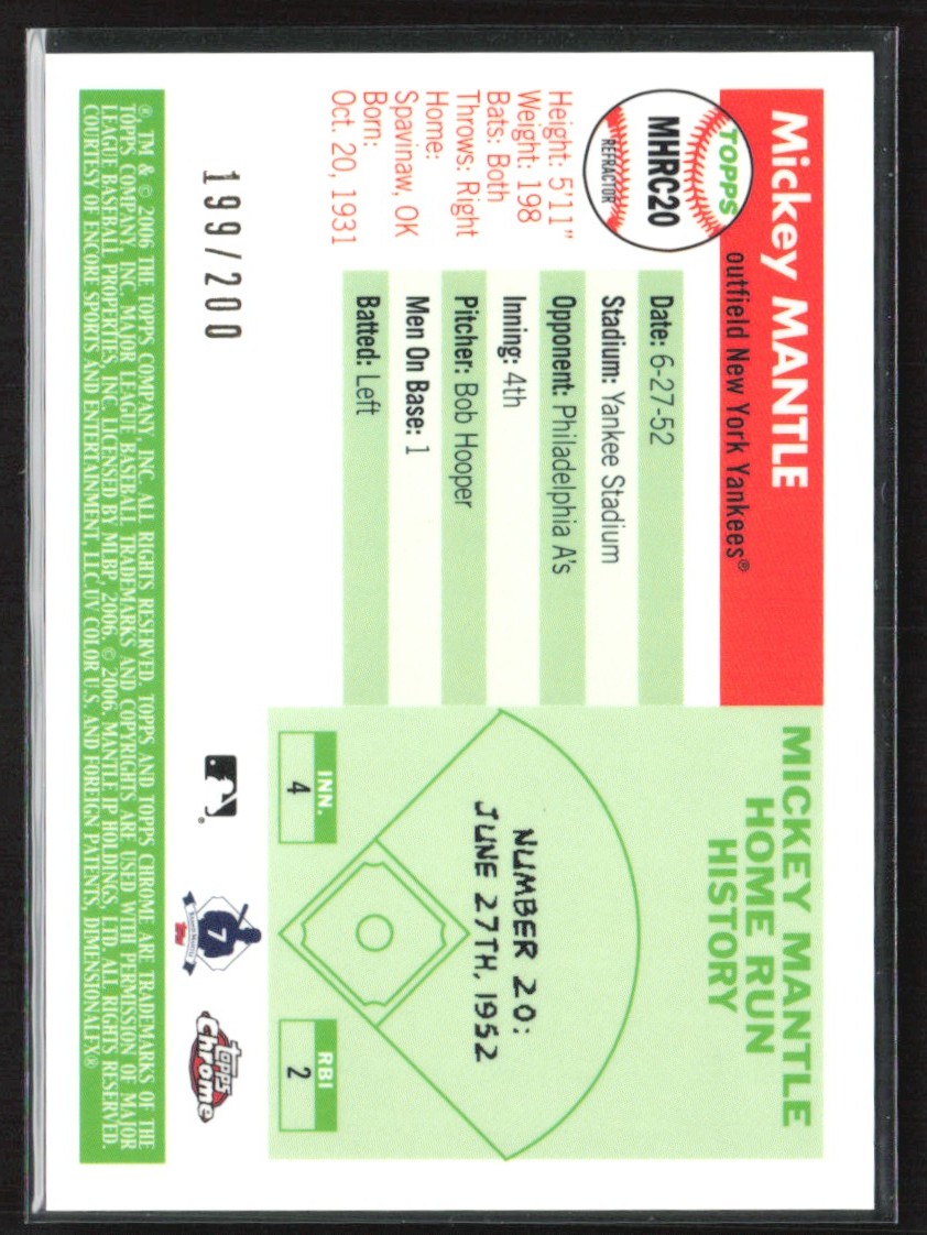 | Mickey Mantle 2006 Topps Chrome Home Run History Black Refractor /200 #MHRC20 |