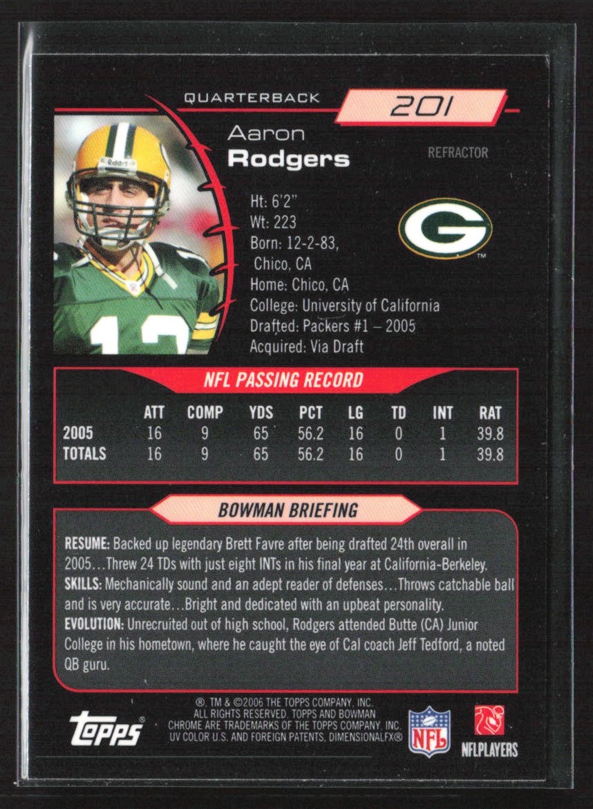| Aaron Rodgers 2006 Bowman Chrome Refractor #201 Green Bay Packers |