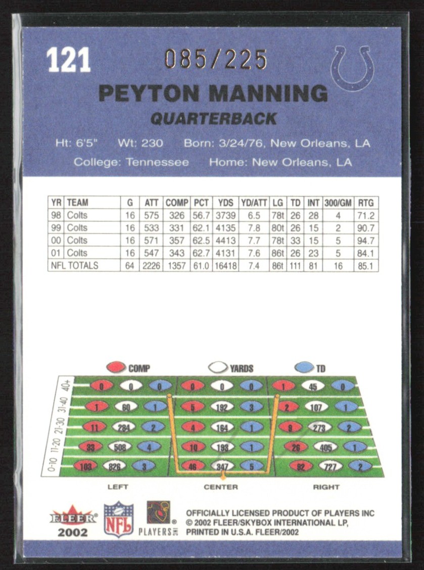 | Peyton Manning 2002 Fleer Tiffany /225 #121 Indianapolis Colts |