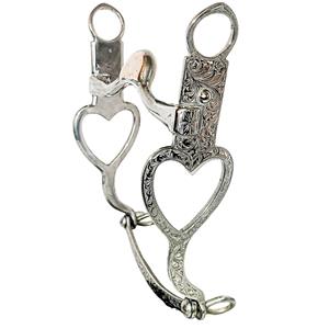 Attention collectors, show exhibitors! This is a beautiful embossed stainless steel Open Heart #10 pattern bit in very lightly used, well maintained vintage pre-owned condition with a rare copper covered low port roller made by Al Tietjen of Reno, Nevada. The close up photos show the makers mark which says "A. Tietjen" above and "Reno, Nev" below, Al's stainless steel bits are very collectible, and I have not seen this mouthpiece combination ever offered on one of his bits. When Ernie Marsh began selling bits under the Marsh Bros label, this mouthpiece was not offered. This is a very well made bit with a 5/16 inch tapered diameter by 4-7/8 inches wide with a 1-1/2 inch tall copper hooded roller curb mouthpiece for taste and salivation. The light port provides mass for weight distribution as well as tongue relief. Like all Tietjen Stainless bits, the mouthpiece is also stainless steel. The total shank length is 7-1/2 inches and the purchase is 2-3/8 inches for a 3.15 to 1 leverage ratio and weighs in at 15 ounces. This stunning bit is a must have for any serious bit collector and will make a great addition to your bit collection.