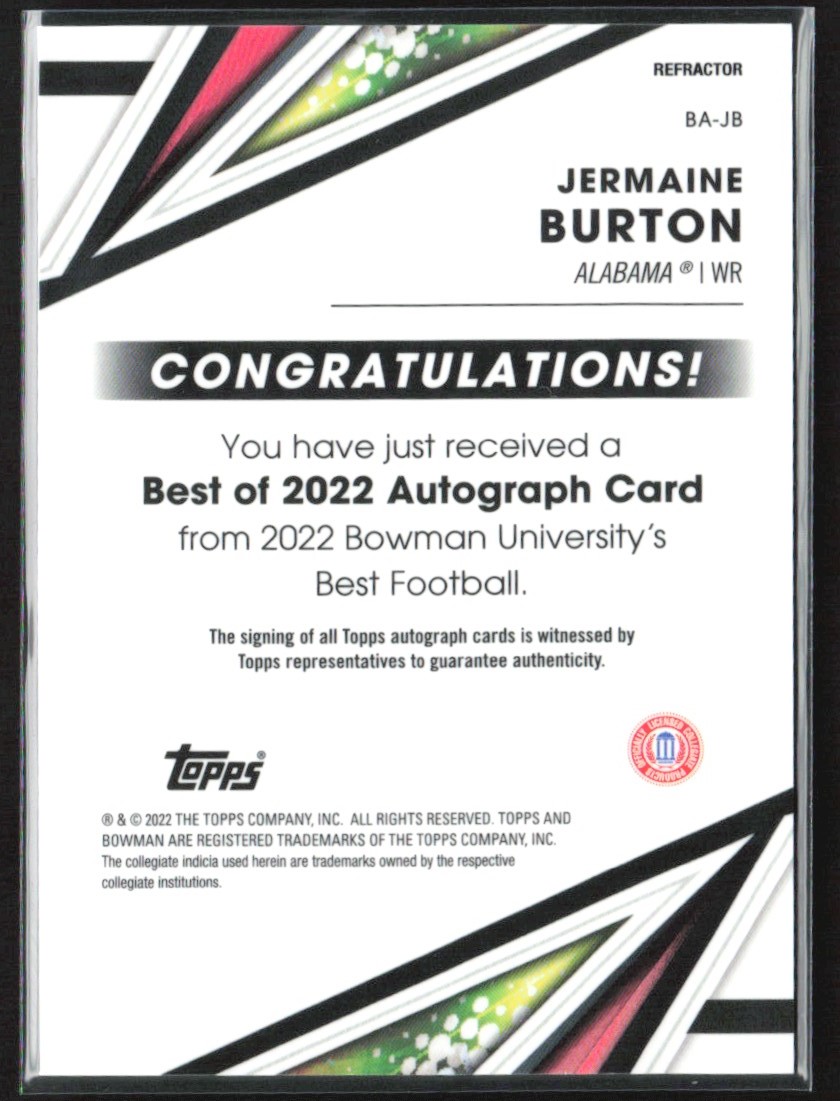 | Jermaine Burton 2022 Bowman's Best University of Auto #BA-JB Alabama Crimson |
