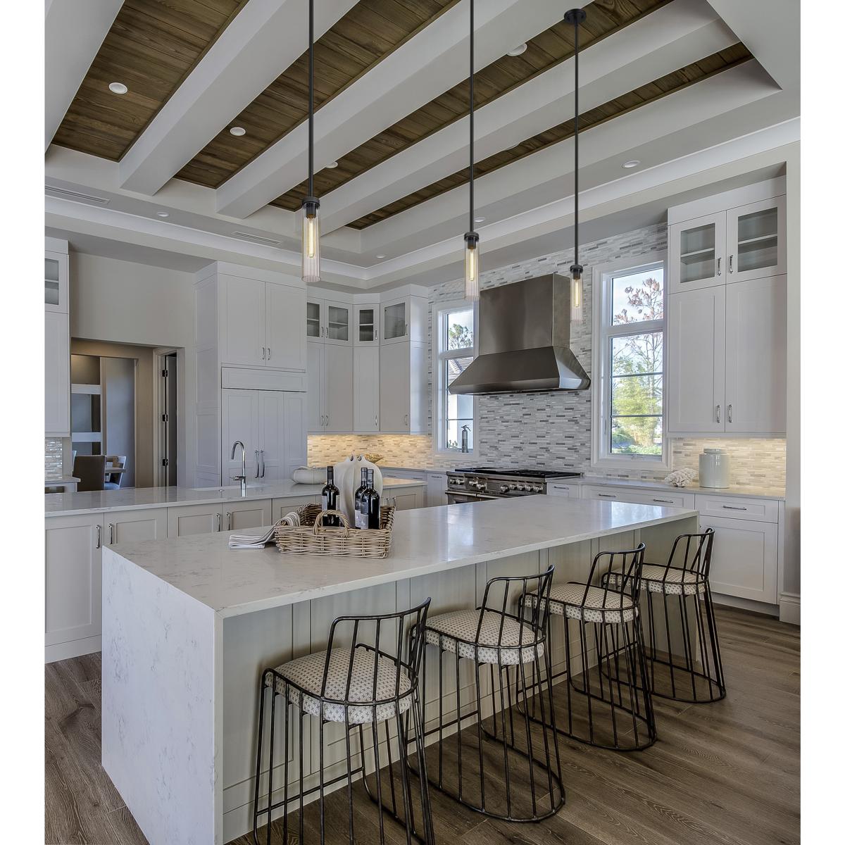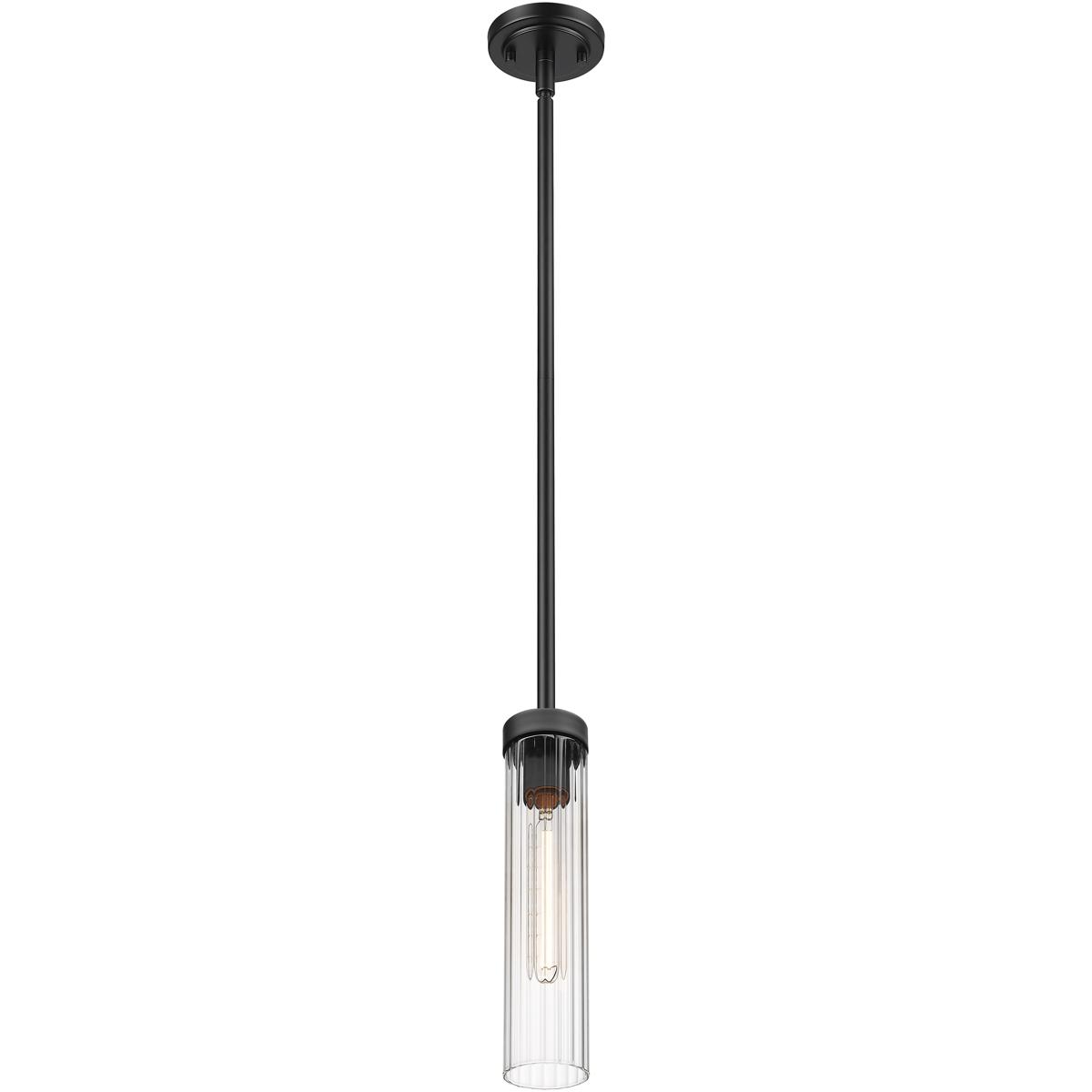 The Beau collection offers a versatile light fixture perfect for a contemporary setting in need of accent lighting. This one-light pendant delivers a streamlined silhouette blending matte black finish steel framing and accents with a charming clear glass cylinder shade, creating a vertical optical division. Choose this stylish pendant for illuminating a nook, living area, or foyer.