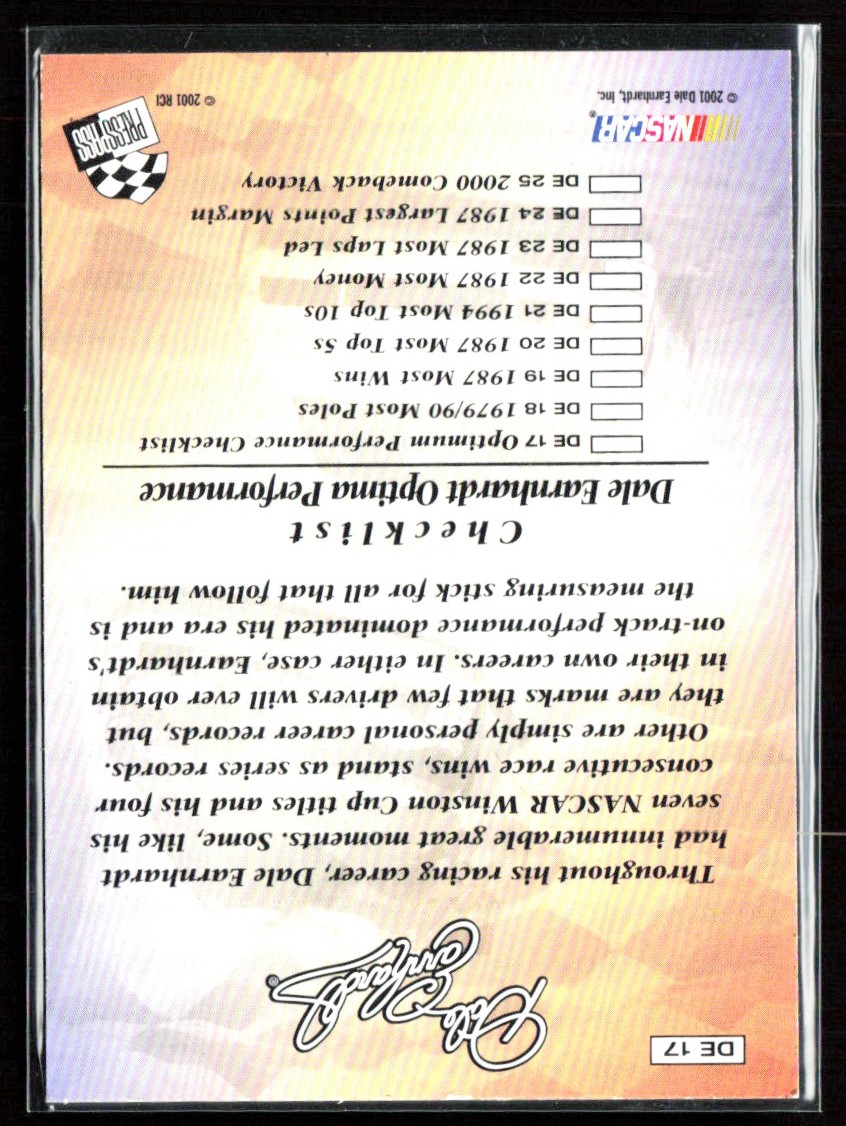| Dale Earnhardt 2001 Press Pass Optimum Performance #DE17 |